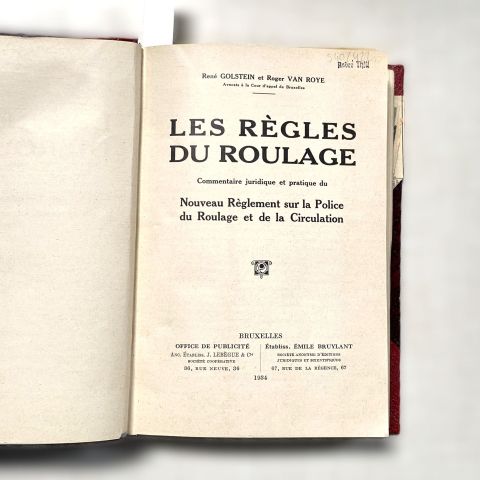 ROUTE. GOLSTEIN and VAN ROYE: Les Règles du Roulage, Commentaire juridique et pratique du Nouveau Règlement sur la Police du Roulage et de la Circulation.