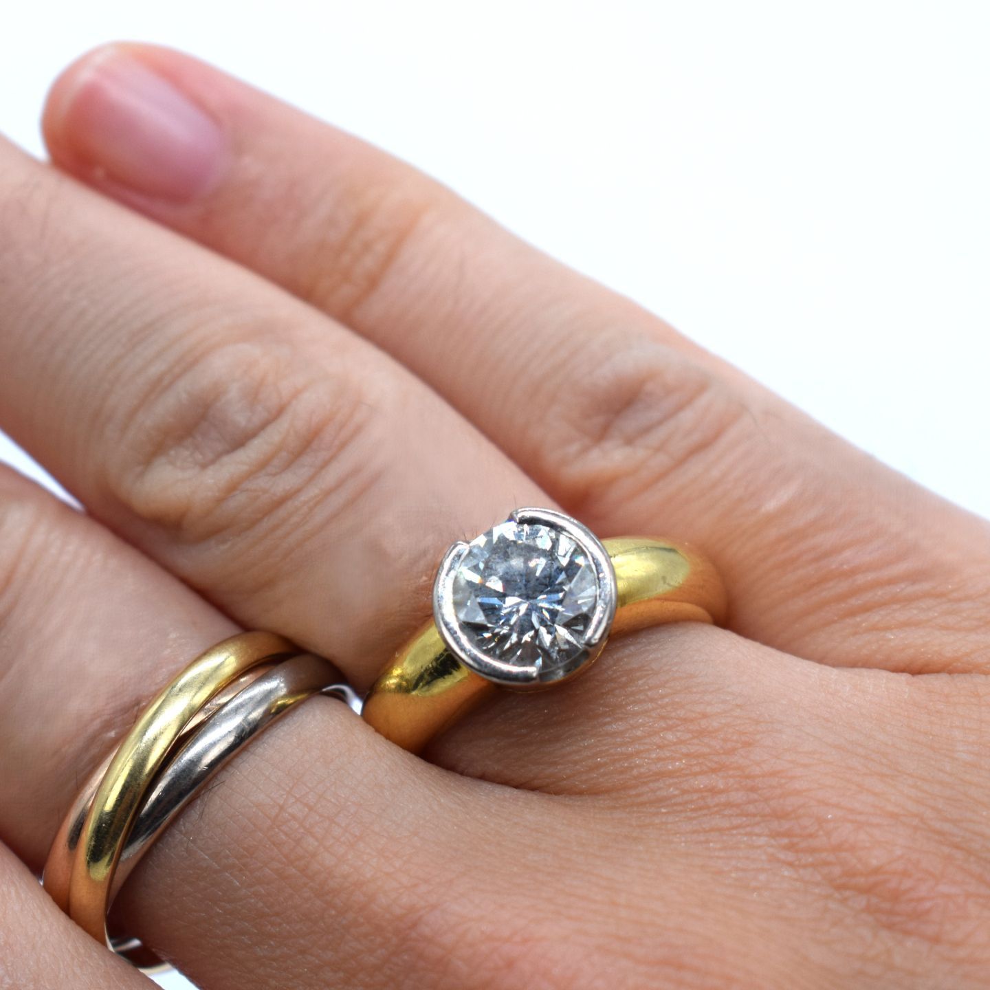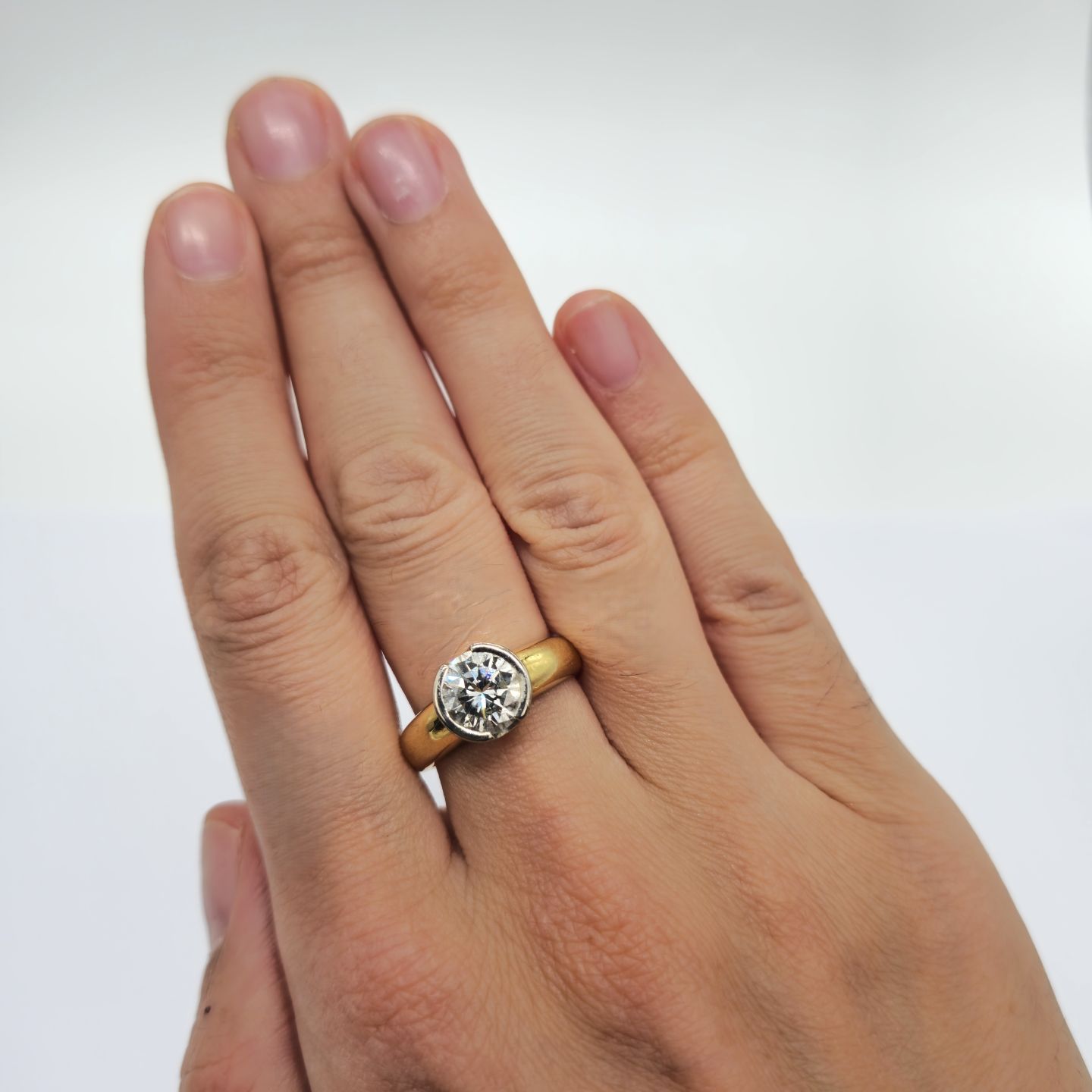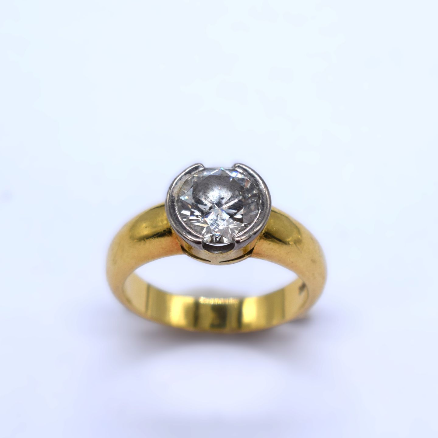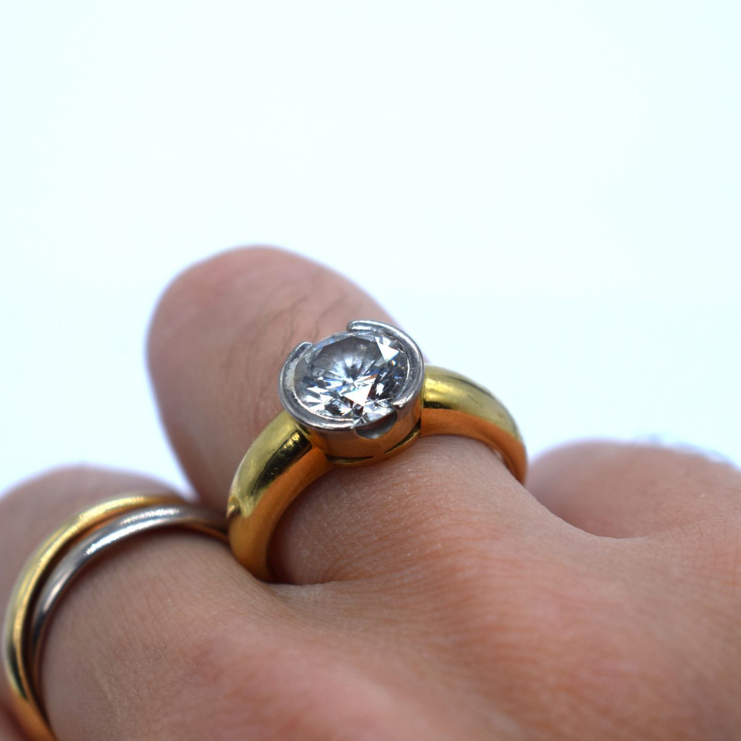 Beautiful 18ct yellow and white gold RING set with a 2.10ct diamond. Size: 53. Weight: €7.85