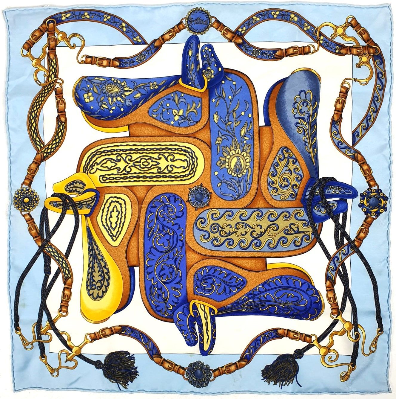 Hermes silk square model Festival 40x40 cm with light stains to clean