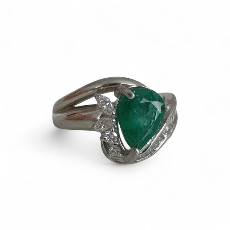 RING in platinum 900/1000 set with an octagonal oil minor emerald (2.93ct), diamonds (0.5ct). IGS certificate JW202502062816. Weight: 10.04 g. Size 53.