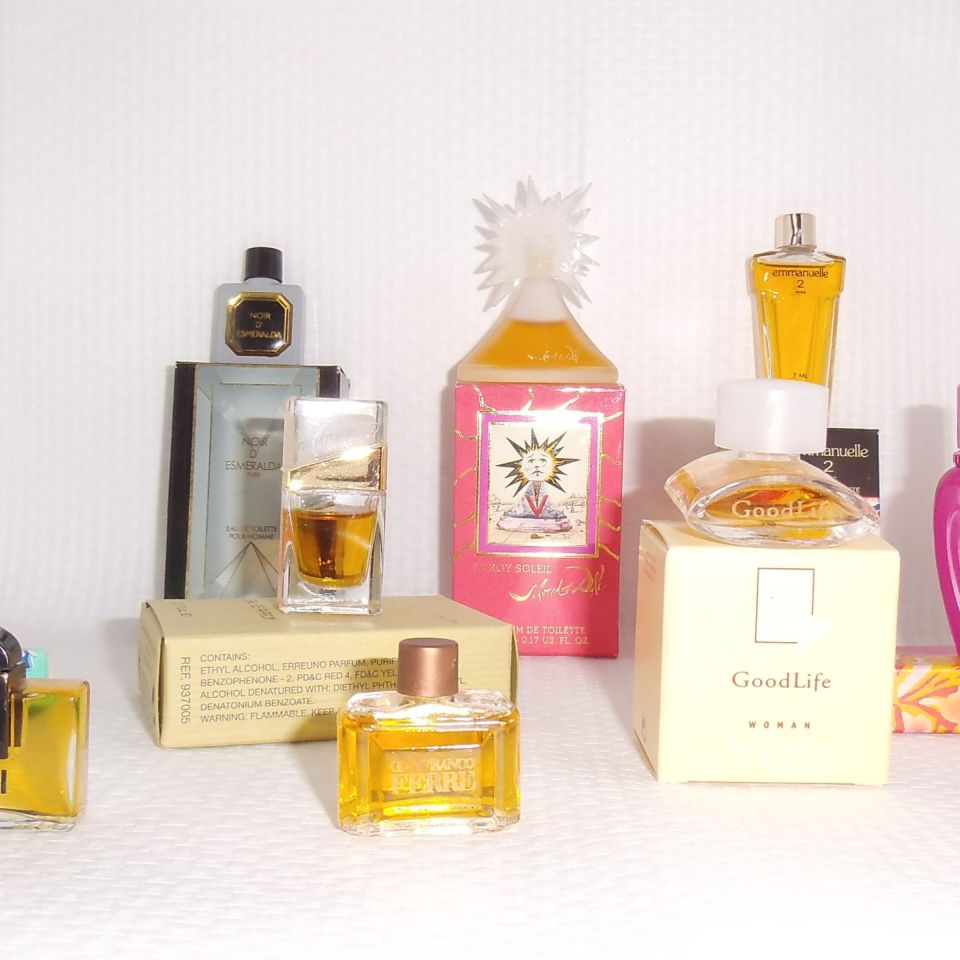 PERFUME MINIATURES. Beautiful assortment of 10 miniature perfume bottles from the great perfume houses such as ESCADA, FERRE, SALVADOR DALI, FENDI, DAVIDOFF, ....