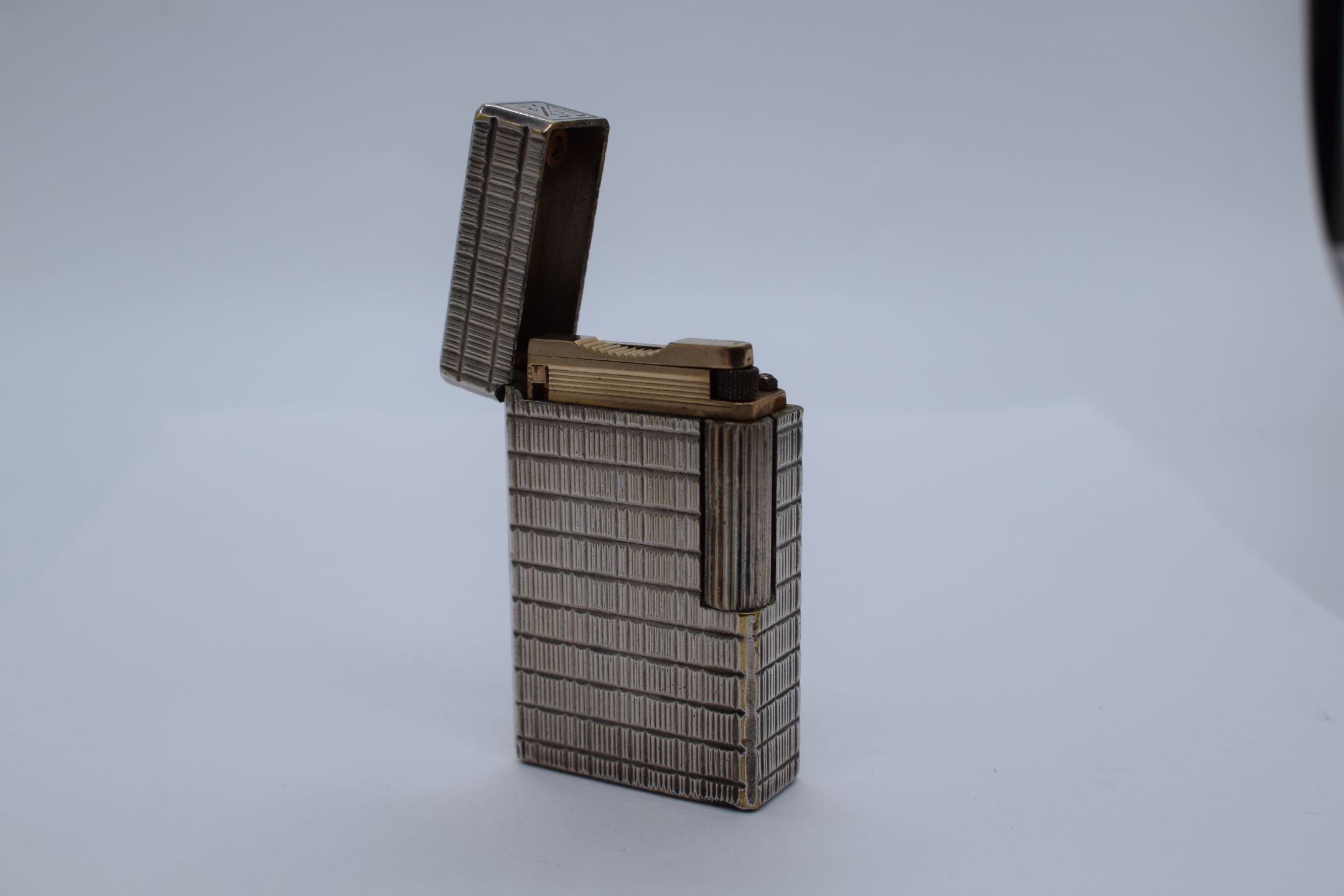 DUPONT. Silver-plated lighter, striated design