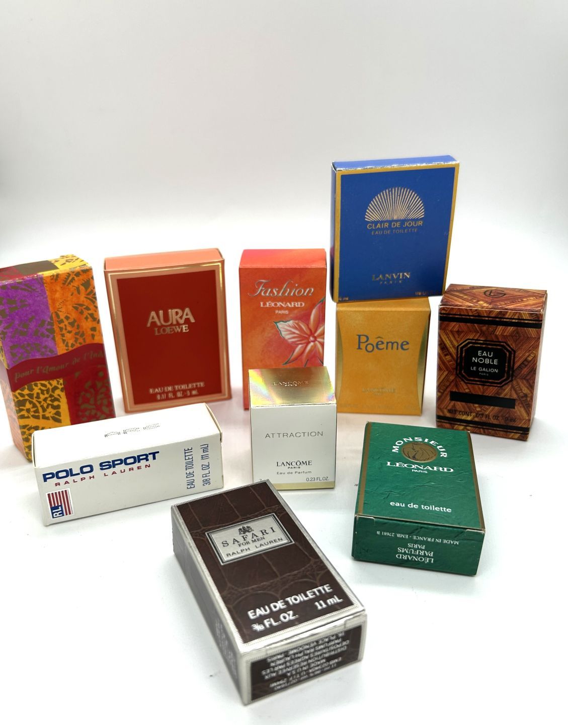 Set of 10 miniature perfume bottles in perfect condition with original boxes