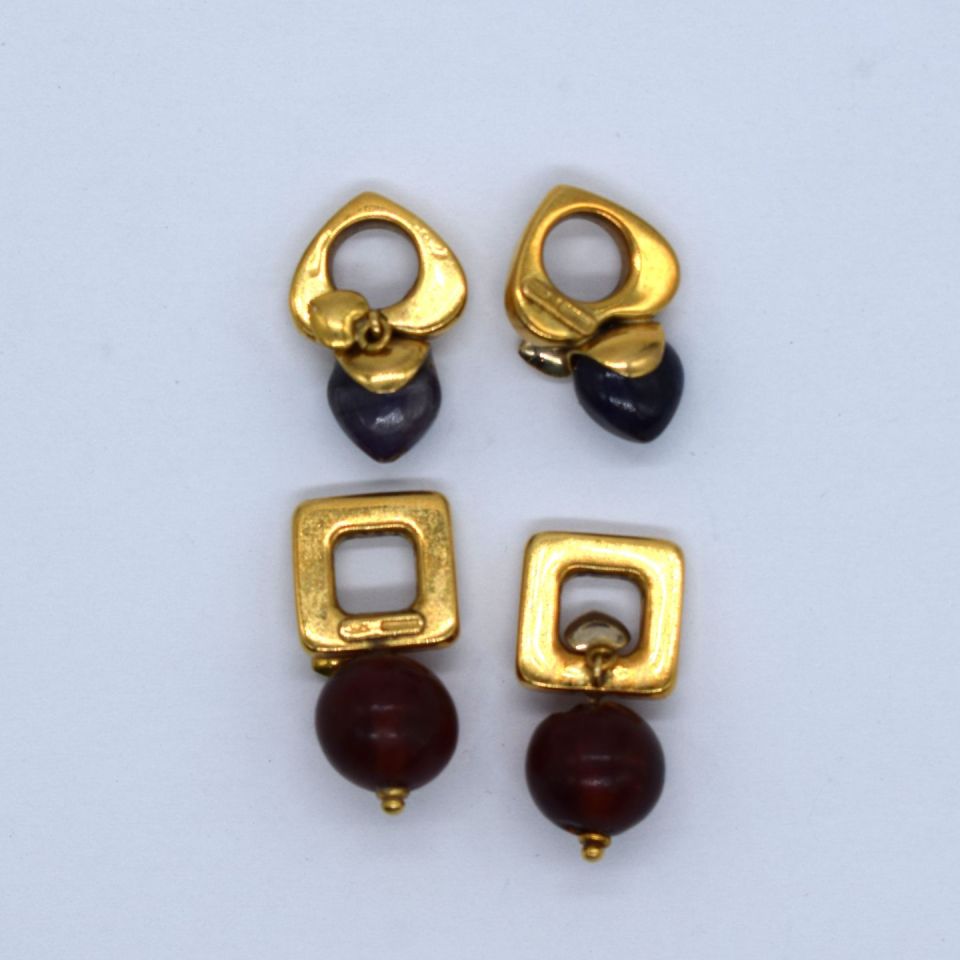 Set of 4 bélières in 18ct gold, set with elegant hard stones