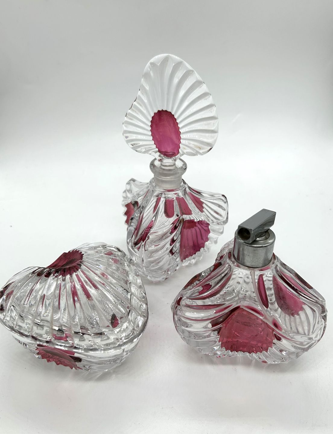 Toiletries in the VAL SAINT LAMBERT style. Spray, bottle and covered box