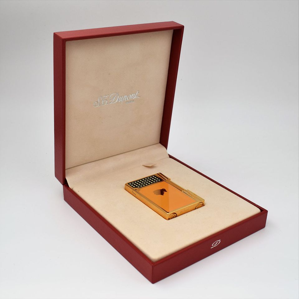 BRIQUET from the Habanera line (1990-1995), limited and numbered, by S.T. DUPONT & COHIBA, Gatsby type, 18ct gold plated and Chinese lacquer, original box and certificate, new never used but slight scratch on the woman's head - Series made exclusively for Cuba Tabaco and sold exclusively in Casa de Habano boutiques in Cuba.