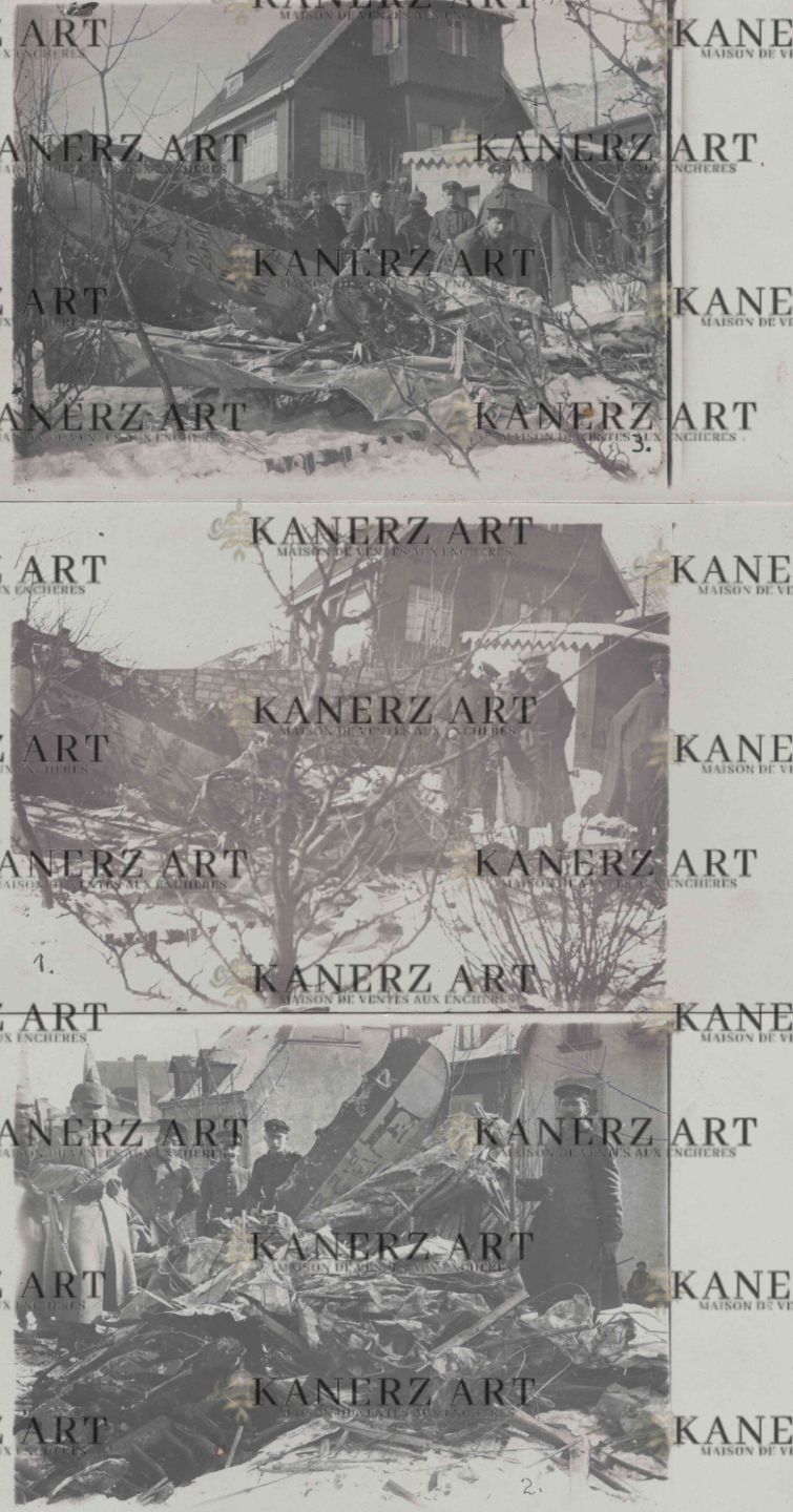 WAR I. Reunion of 3 carte-photos (views #1, #2 and #3) of the French aircraft shot down at Differdange in 1917, without caption.