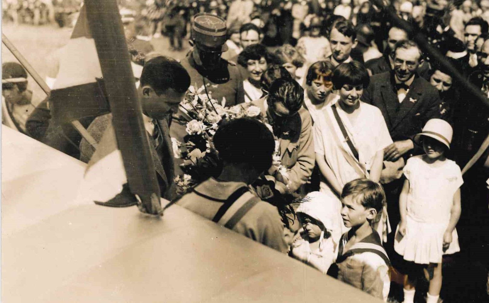 AVIATION. Photo card from the Steinsel Aviation Meeting on June 24, 1928, showing the O-BAJC biplane "Prince Jean" with a signing session by Luxembourg aviator Lou HEMMER.