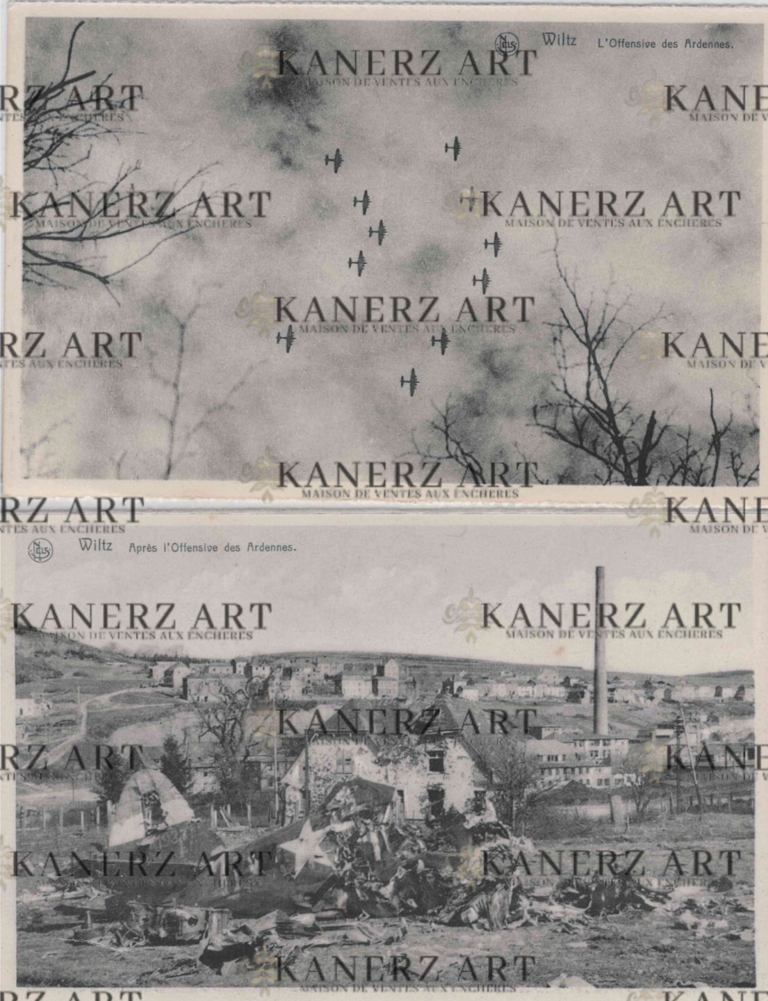WAR II. Two cards featuring aircraft from the Fascicule with 10 postcards "WILTZ Après l'Offensive des Ardennes", Nels