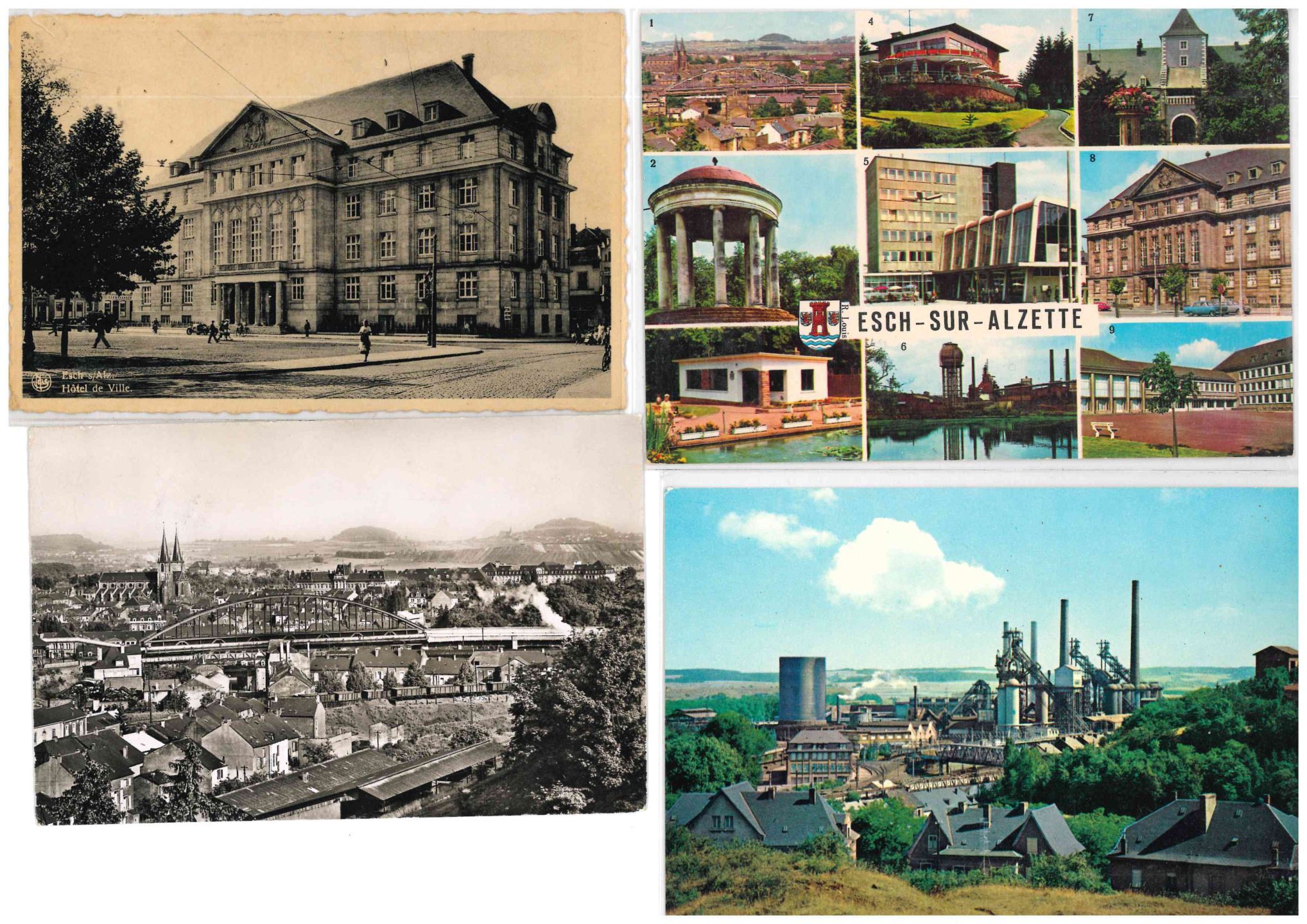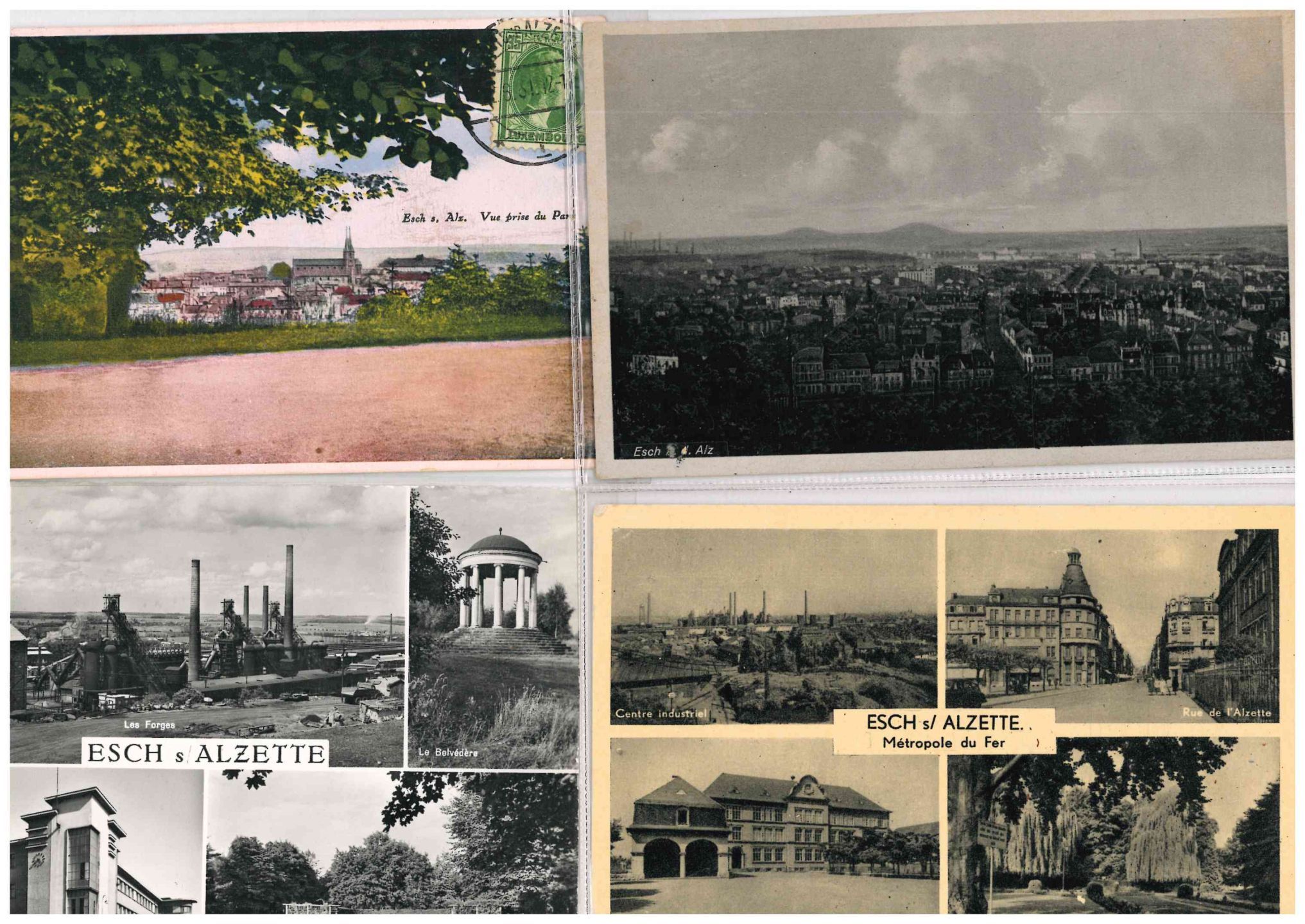 ESCH. Reunion of 6 semi-modern panorama or vignette maps and 5 maps from the 20/30s
