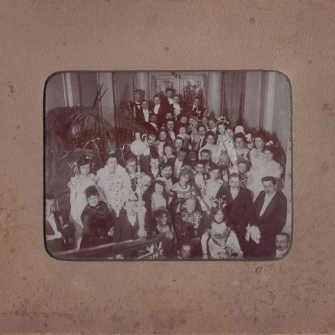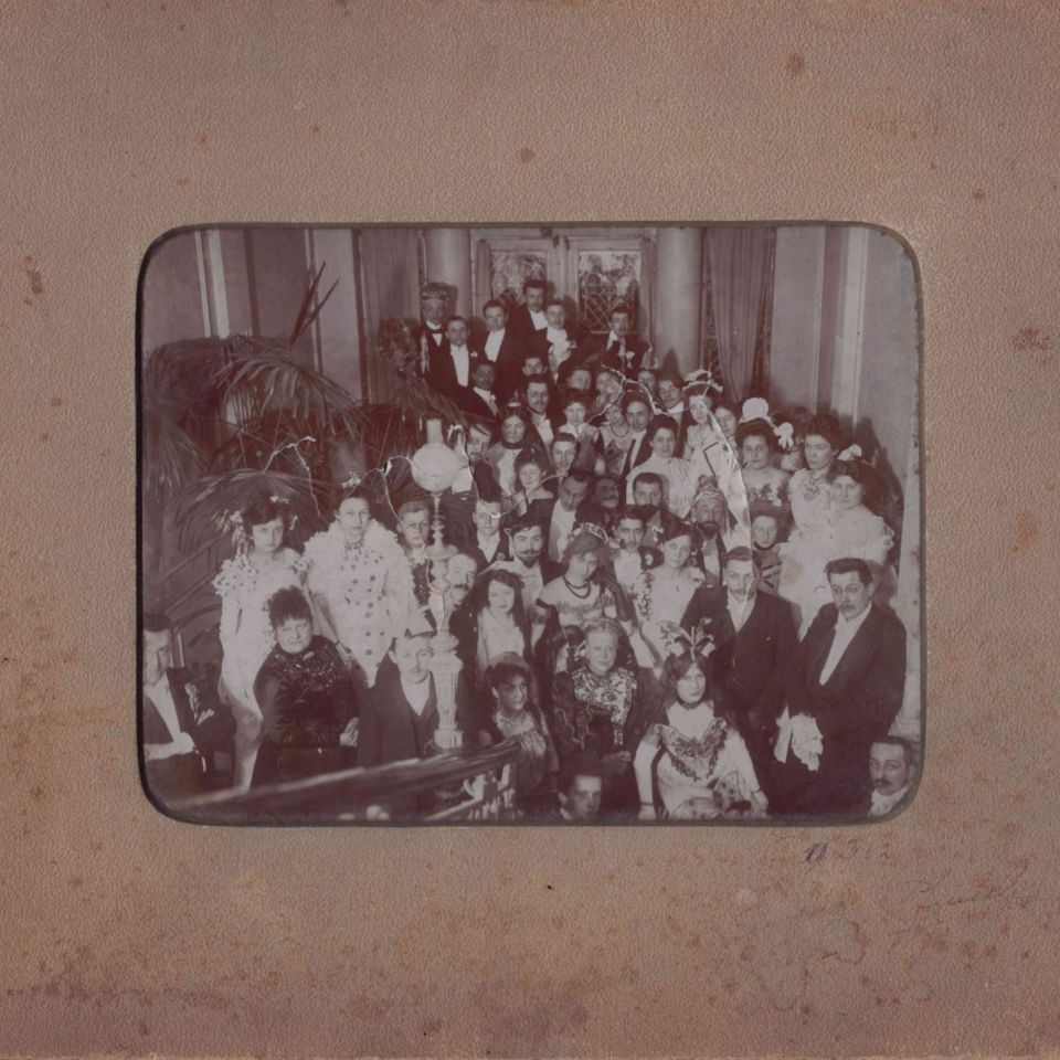 Photograph of a party at the FUNCK family home at the turn of the century, paper torn but not missing, 11 x 14.5 cm