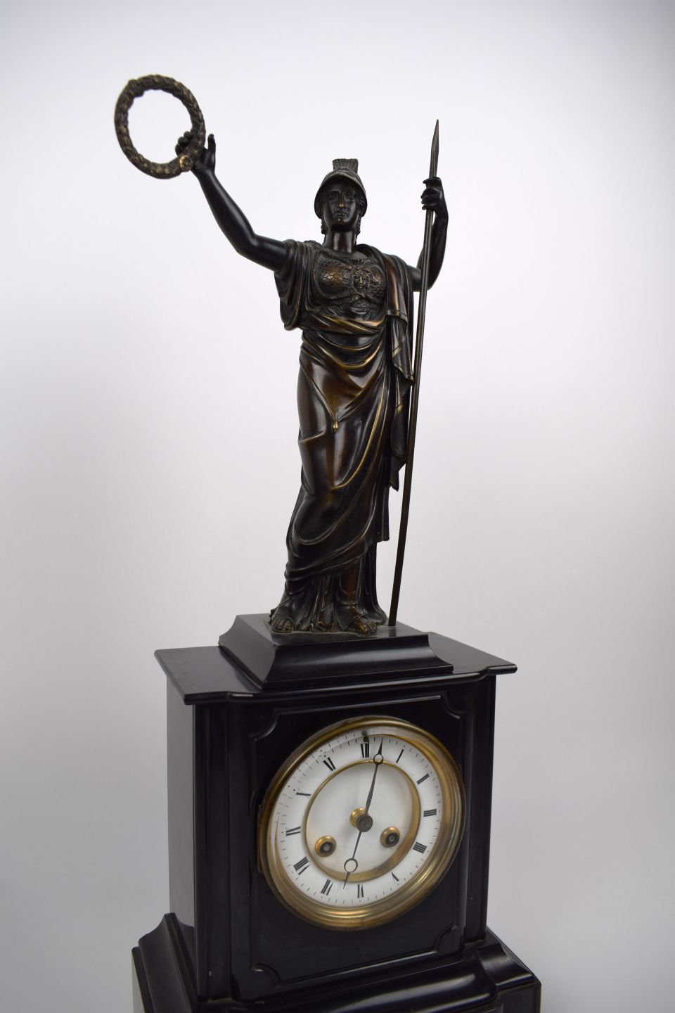 Napoleon III black marble HANGER surmounted by an allegory of victory with a bronze sculpture of the goddess Athena with her spear holding a laurel wreath.