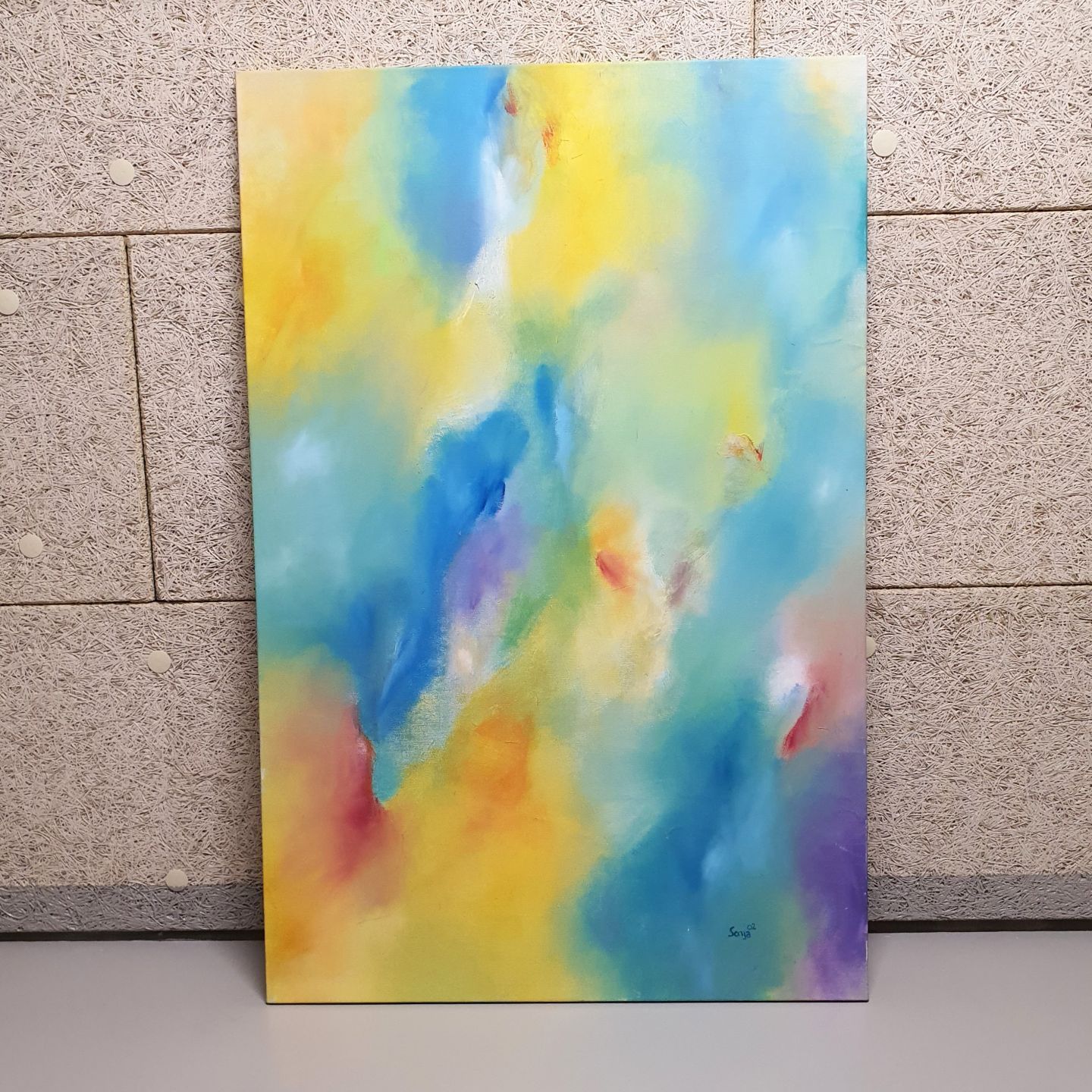 Abstract acrylic composition by Sonja Schuller-Hebel, 1959, 148 x 97 cm