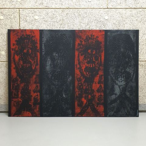 DEPIENNE André (1957). The 4 faces. Oil on canvas, mixed technique, vertically signed lower right.