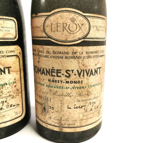 3 Bottles of Romanée-Saint-Vivant, Domaine de la Romanée Conti LEROY, Marey-Monge, Vintage 1975, dusty labels, level neck to low neck