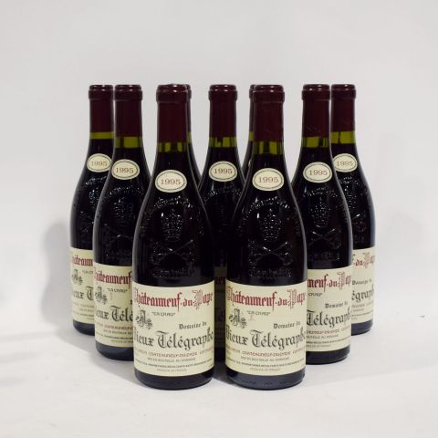 Set of 9 bottles of Domaine du VIEUX TÉLÉGRAPHE, Appellation Chateauneuf-du-Pape, Vintage 1995, cuvée "La Crau", good condition