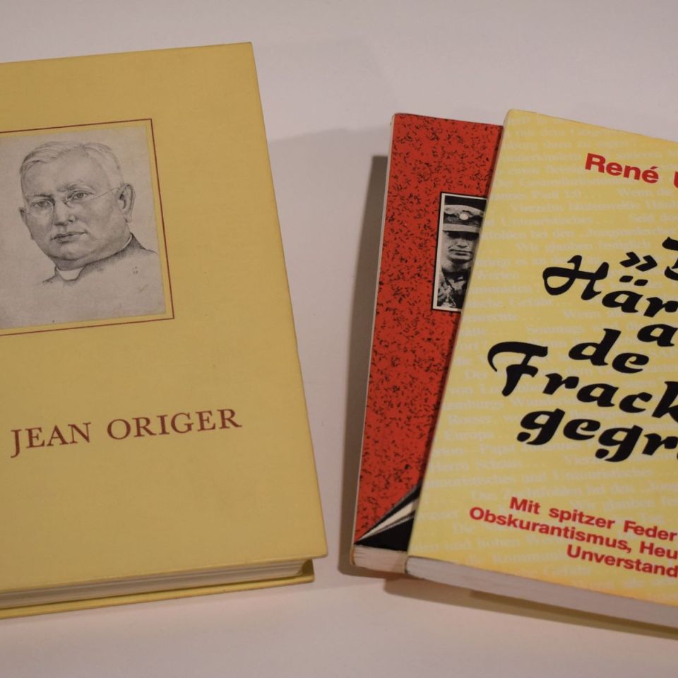 (RELIGIOSA) 1. René URBANY: "Dem Här an de Frack gegraff", Mit spitzer Feder gegen Obskurantismus, Heuchelei und Unverstand, 1987. 2. Edouard KUTTEN: Im Auftrag Gottes? Eine Theologie der Bevormundung und Erniedrigung. 3. Edouard MOLITOR: Mgr Jean ORIGER, Defensor Civitatis, 1963.