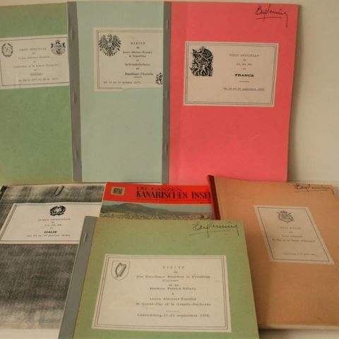 Set of files of Eugène MEUNIER, including Luxembourg press articles covering the state visits of the Royal Highnesses: Spain in July 1980 (with book Die Ganzen Kanarischen Inseln), Ireland to Luxembourg in September 1978, France in September 1978, Austria in October 1977, Senegal in January 1977, Italy in January 1980