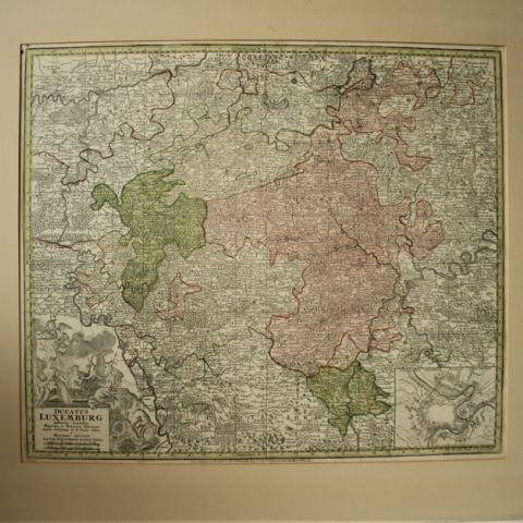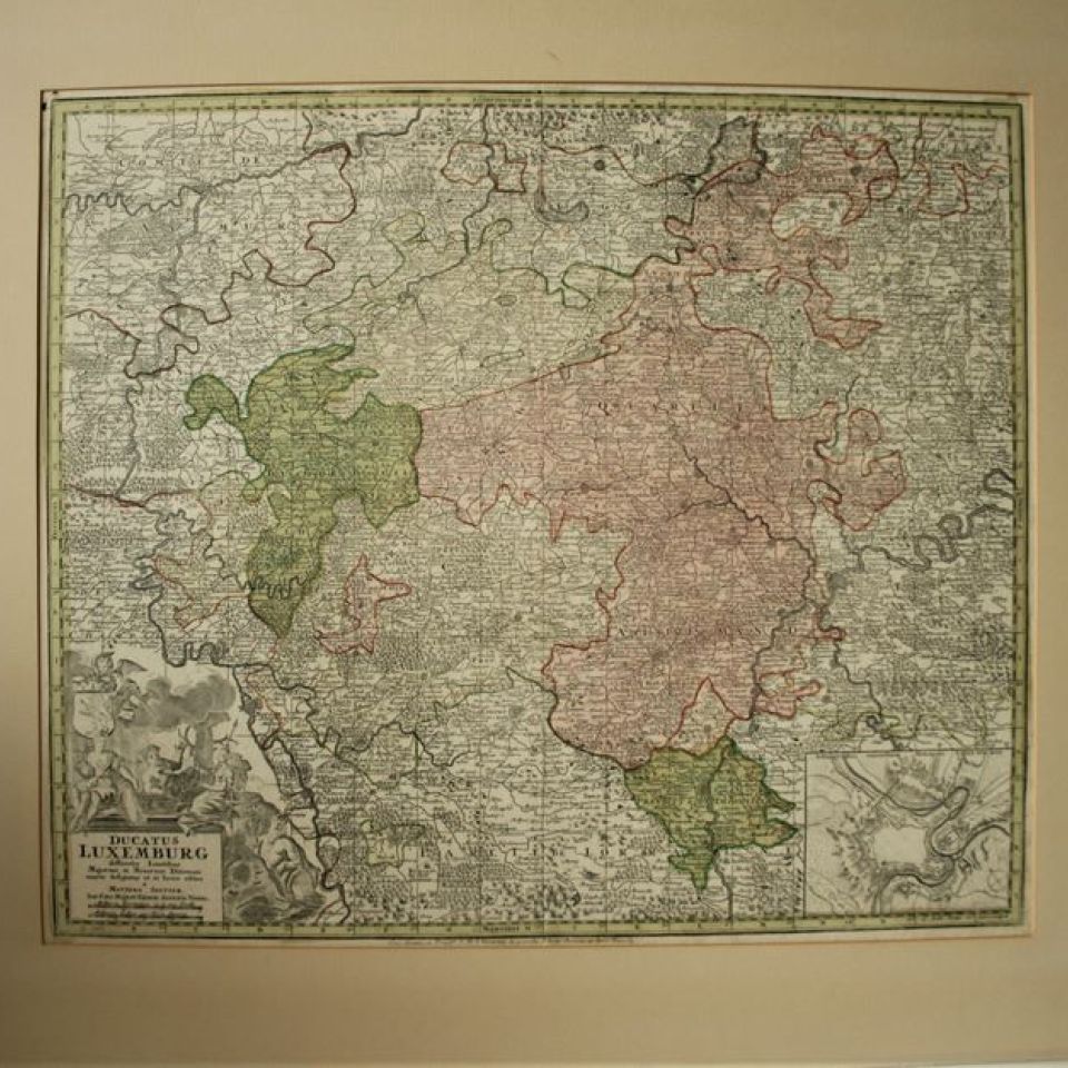 Map of Luxembourg "Ducatus Luxemburg distinctis Limitibus..." by Georg Matthäus SEUTTER, 1740/42 - Dimensions : 55 x 65 cm [Van Der Vekene - The geographical maps of the Duchy of Luxembourg - 3.14.B]