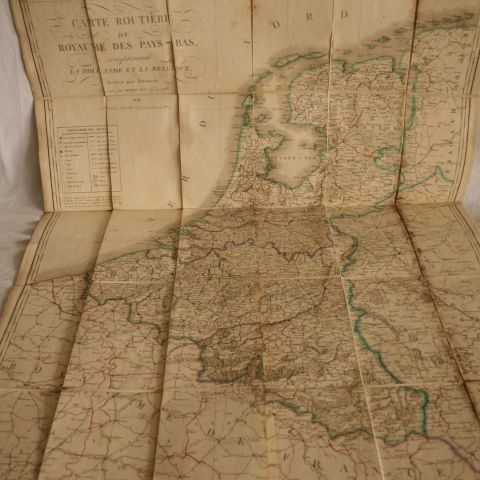 Road map of the Kingdom of the Netherlands including Holland and Belgium (and Luxembourg) divided by Provinces, drawn by HERISSON, 1830 - Canvas map with watercolored outlines - Dimensions : 113 x 78 cm