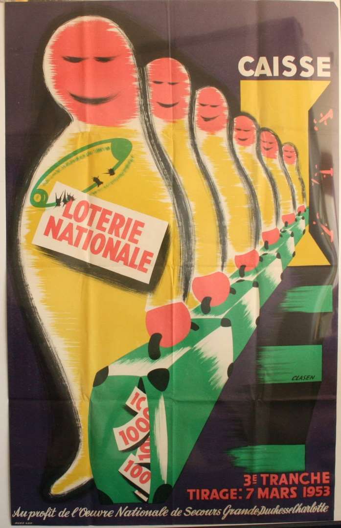 National Lottery poster, designed by CLASEN, 1953, Imprimerie HUSS - Dimensions: 100 x 62 cm