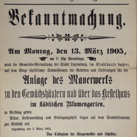 Invitation to tender for work on the City of Luxembourg greenhouses, Luxembourgish, 1905