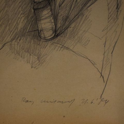 Pencil drawing signed by Raymond Weiland, dated 21.6.84, 23 x 13 cm