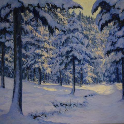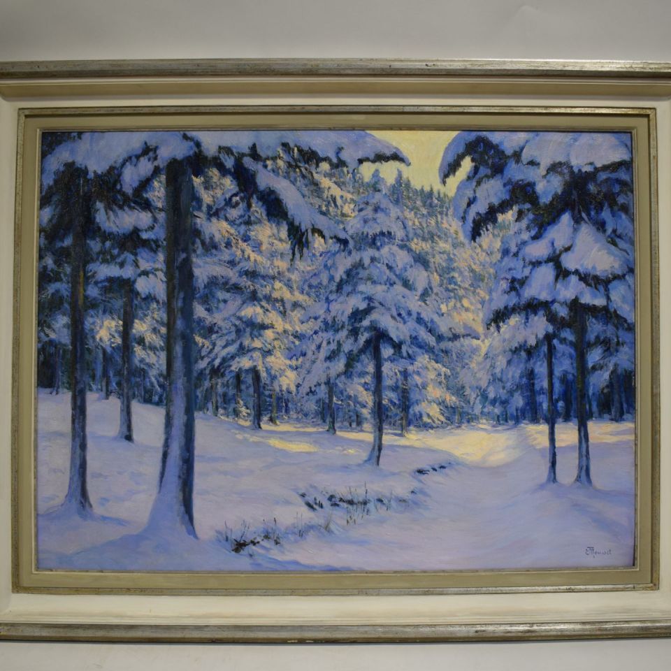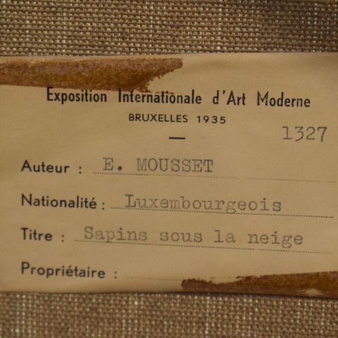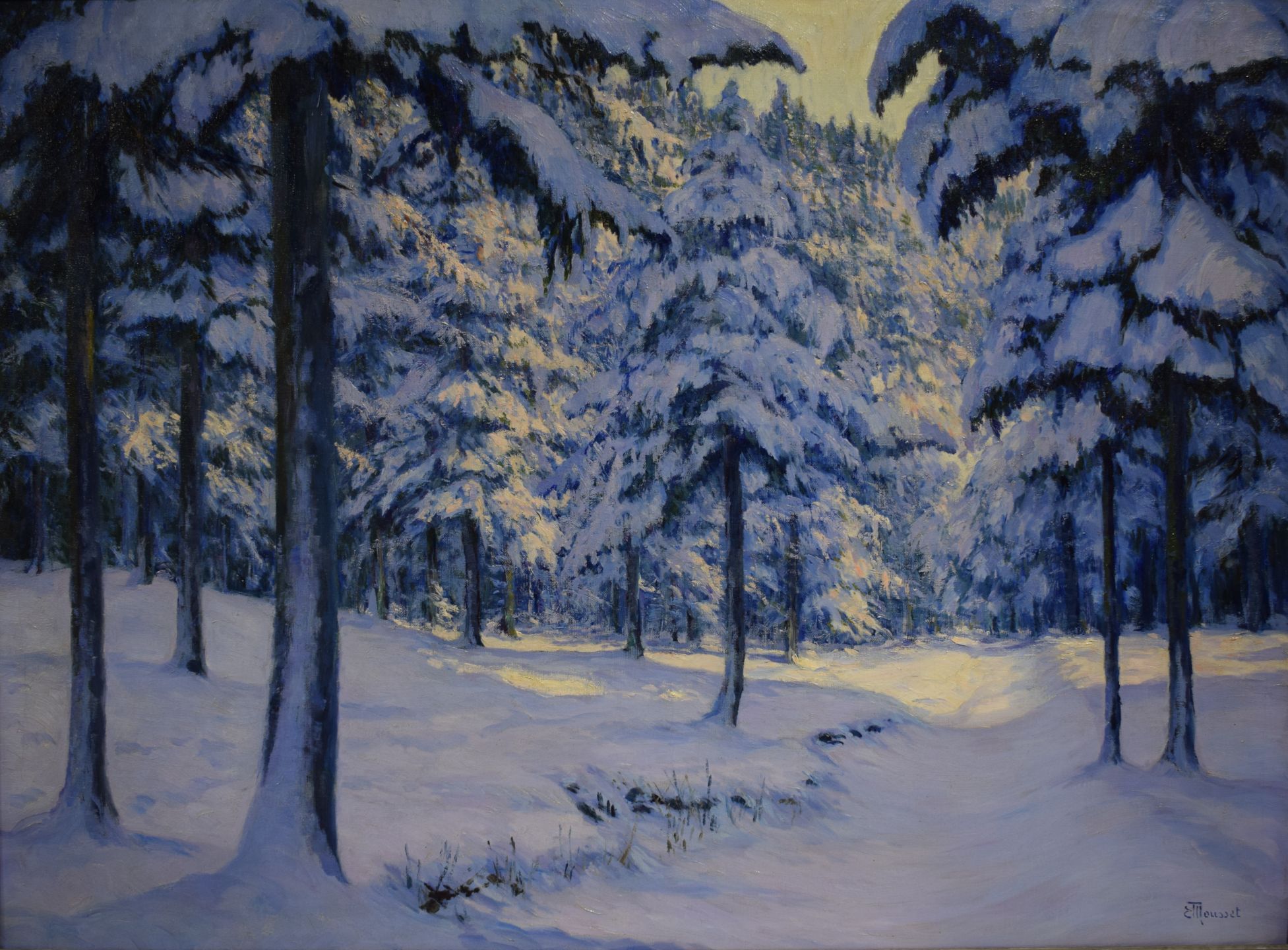 Eugène MOUSSET (1877-1941) [Prix Grand-Duc Adolphe 1916], Sapins sous la neige, Oil on canvas, signed lower left, Work exhibited at the Exposition Internationale d'Art Moderne de Bruxelles in 1935, 77 x 104 cm