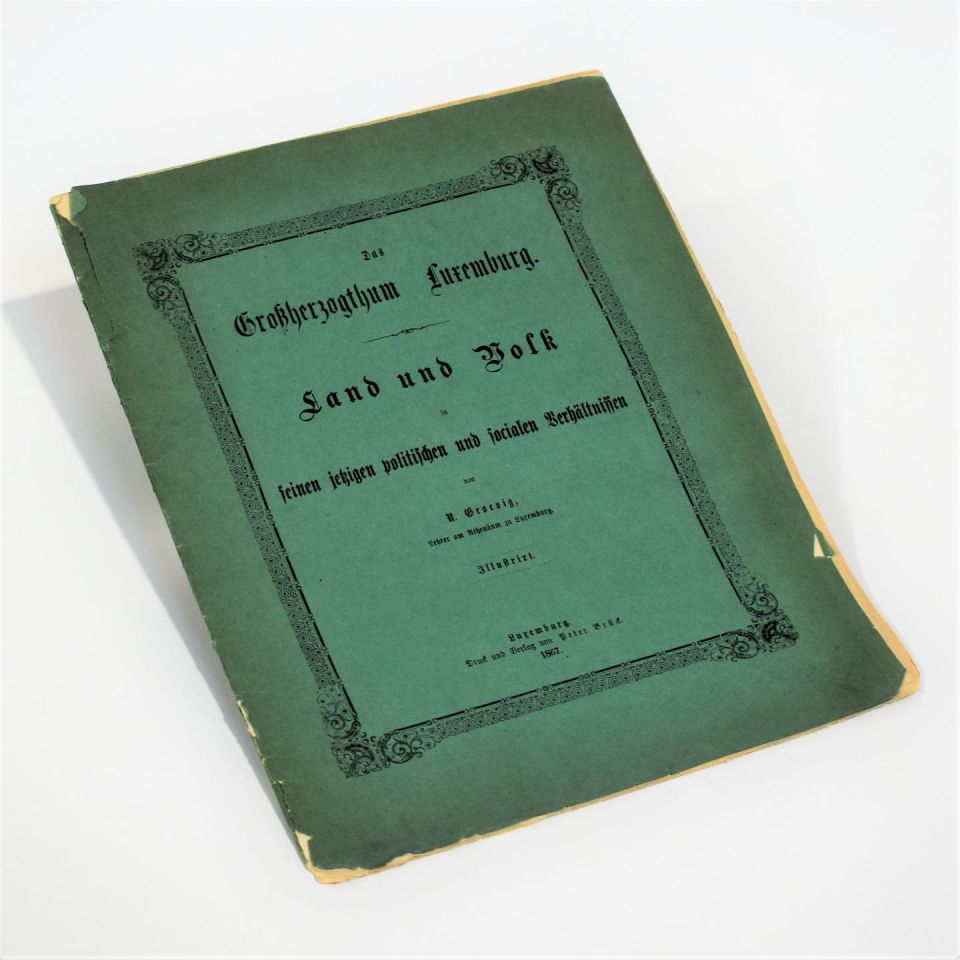 Nicolas GROEVIG (1827-1881): Das Großherzogthum Luxemburg. Land und Volk in seinen jetzigen politischen und sozialen Verhältnissen, 1st edition by Peter Brück, 1867, illustrated with 25 steel-engraved vignettes, some of which were later reproduced in European periodicals, one map, foxing to leaves, Rare publication in folio format.