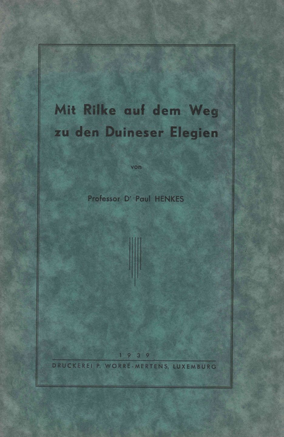 Professor Dr Paul HENKES: Mit Rilke auf dem Weg zu den Duineser Elegien, Druckerei P. Worré-Mertens, 1939, first edition in publisher's cover