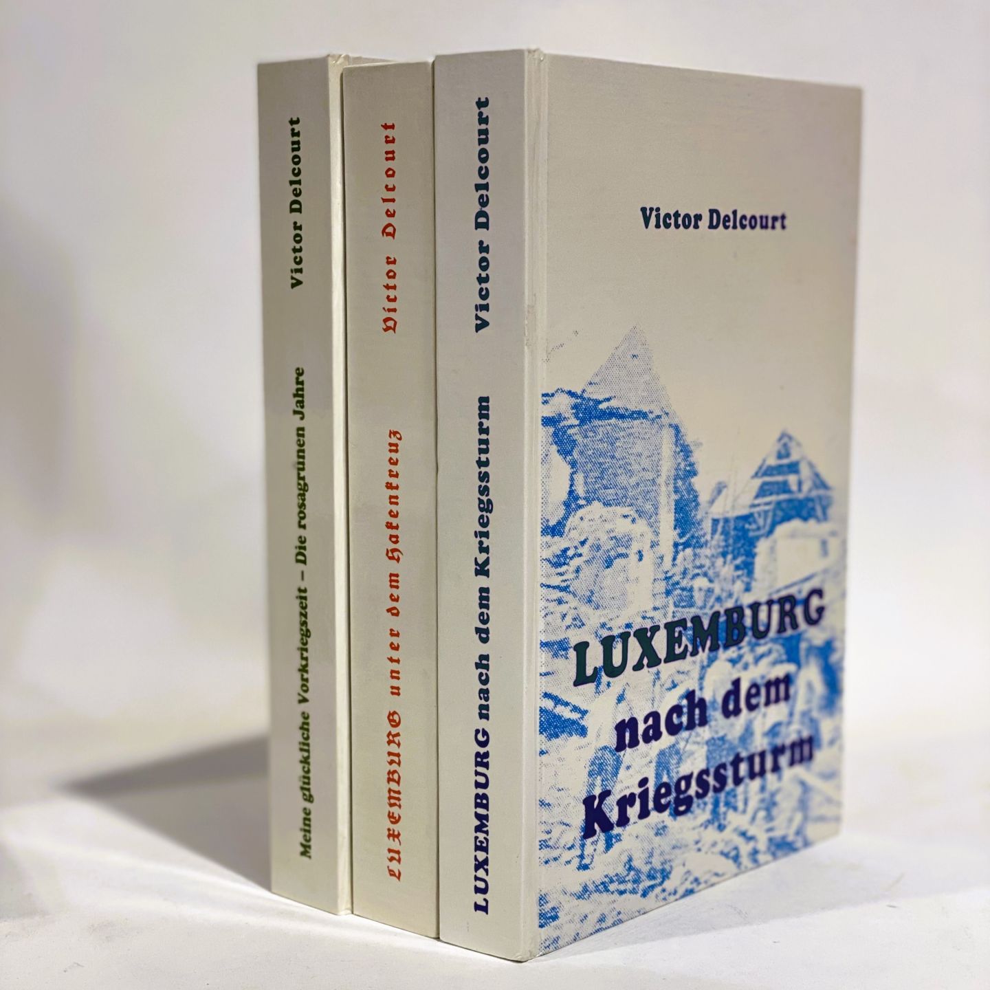 Trilogy by Victor DELCOURT: 1) Meine glückliche Vorkriegszeit oder Die rosagrünen Jahre, Erinnerungen 1919-1939, 1999, 2) Victor DELCOURT : Luxemburg unter dem Hakenkreuz, Erinnerungen an die Kriegsjahre, 1940-1944, éditions Emile Borschette, 1988, 3) Luxemburg nach dem Kriegssturm, Erinnerungen 1945-1965, éditions Emile Borschette, 1989