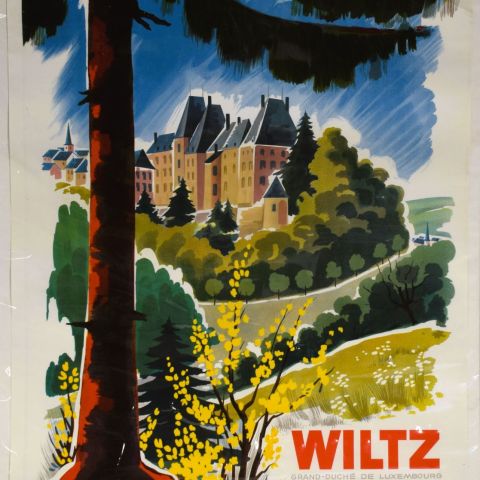 Tourist poster for "WILTZ. Capital of the Ardennes", Edition Syndicat d'Initiative, Imprimerie HUSS Lux, 60's, left side uncut, very good condition, 73 x 55 cm