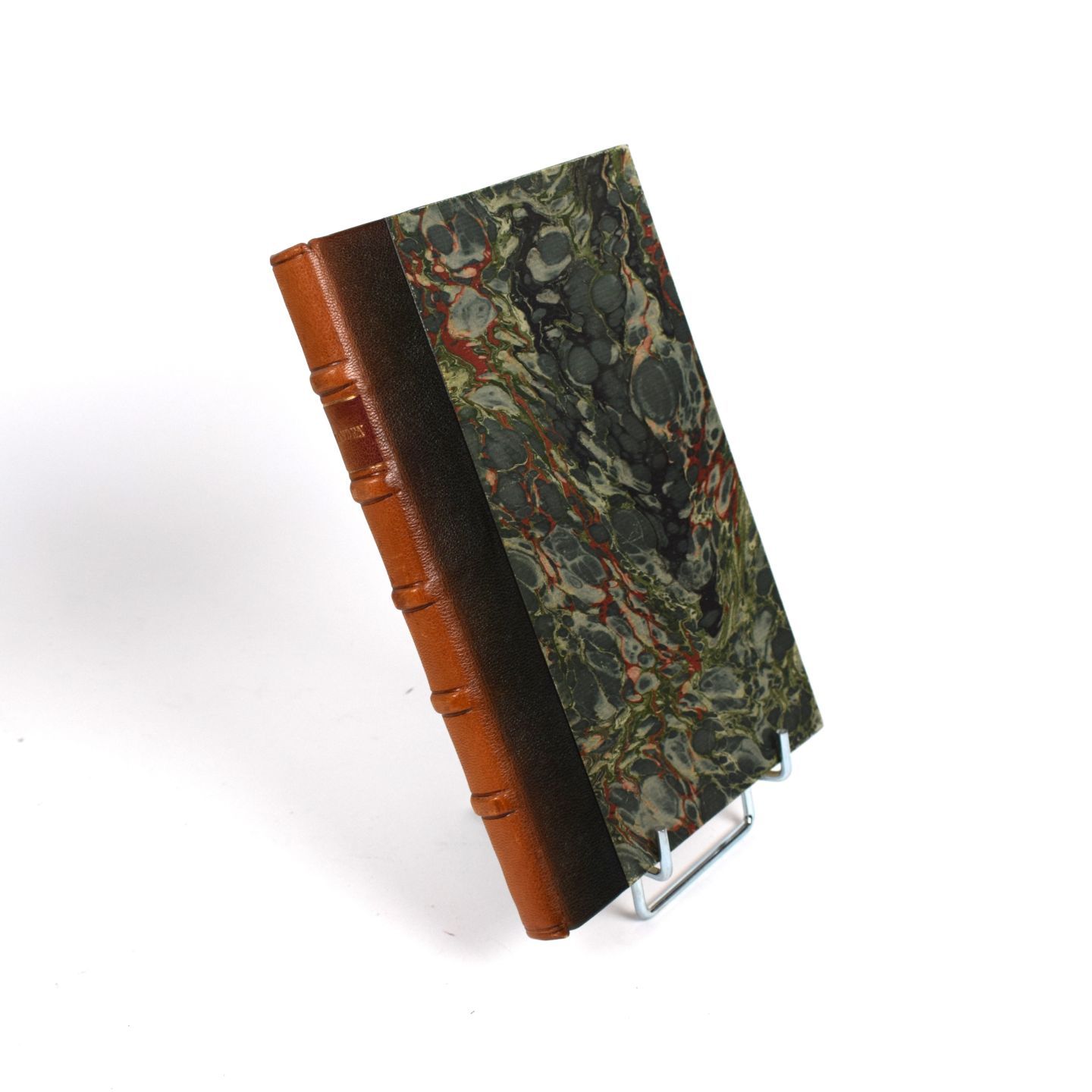 In-8, brown half-chagrin, 5-rib spine, morocco title-piece.
