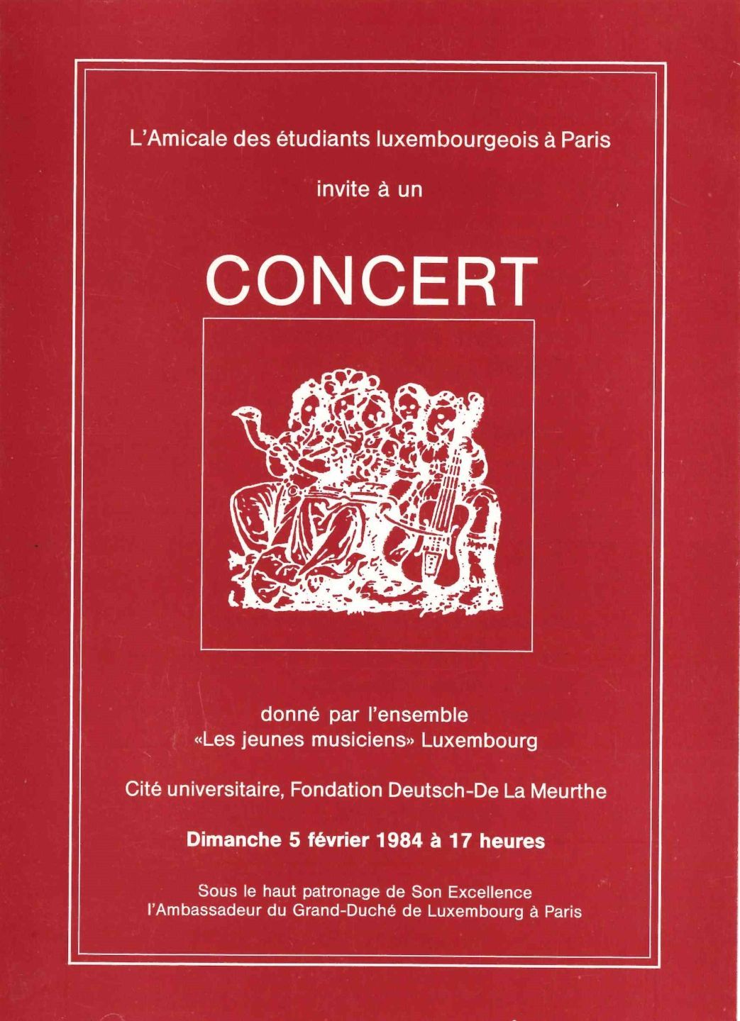CONCERT. Invitation to a concert by the Amicale des étudiants luxembourgeois à Paris, 1984 at the Cité Universitaire.