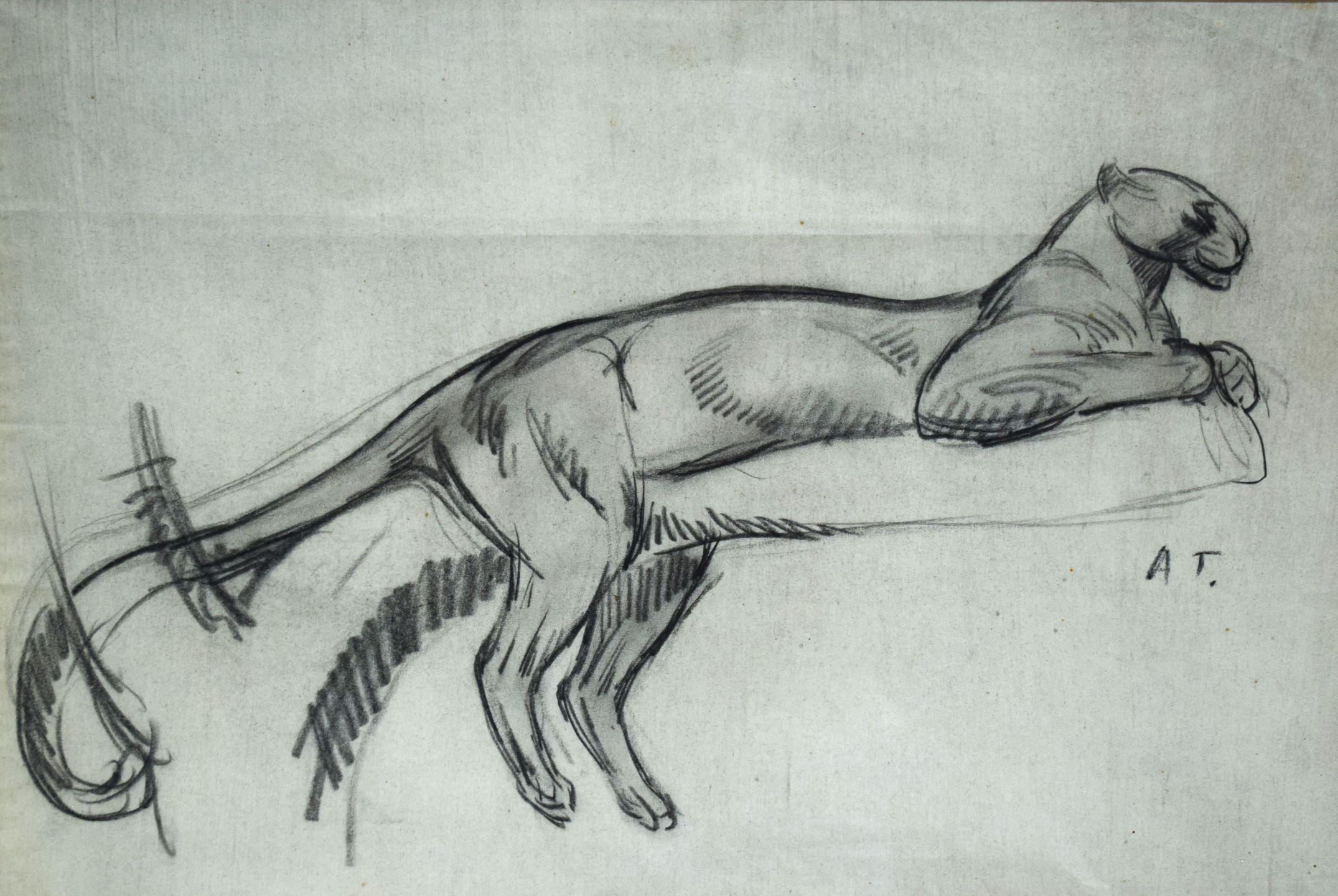 Auguste TREMONT (1892 -1980) [Prix Grand-Duc Adolphe in 1918], Panthère sur la branche, Pencil drawing signed with initials lower right, 28 x 42 cm (on view)