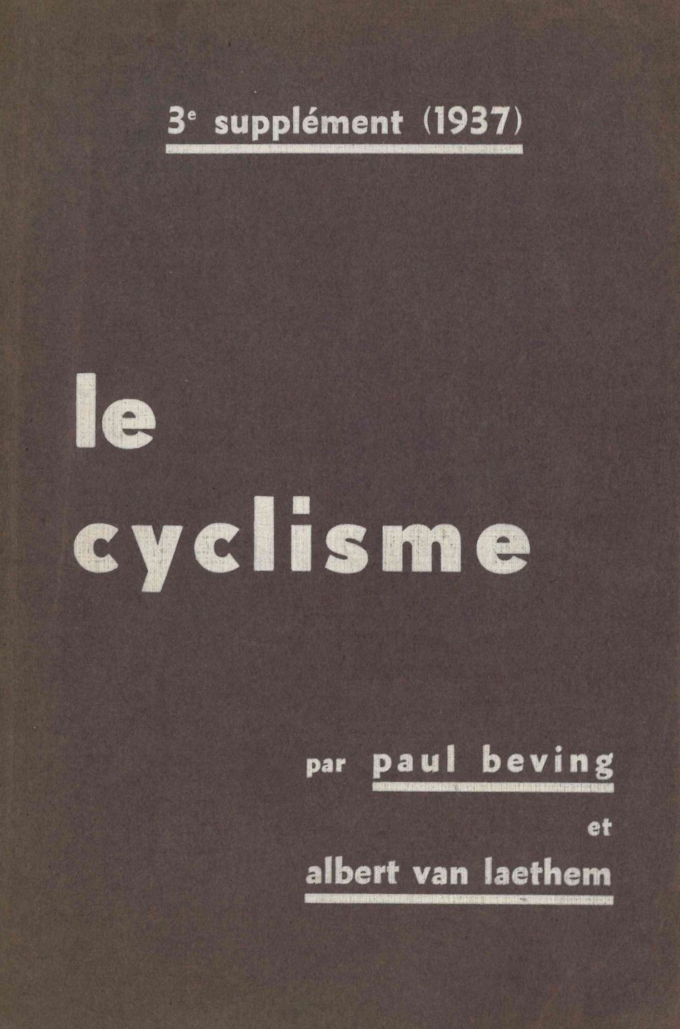 SPORT. Paul BEVING & Albert Van LAETHEM: Le cyclisme (3e supplément), 1937.