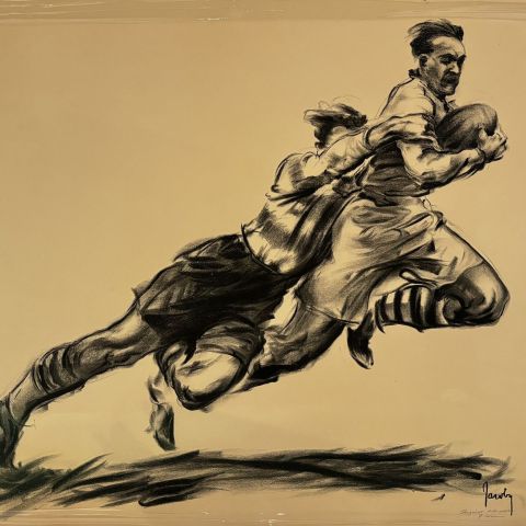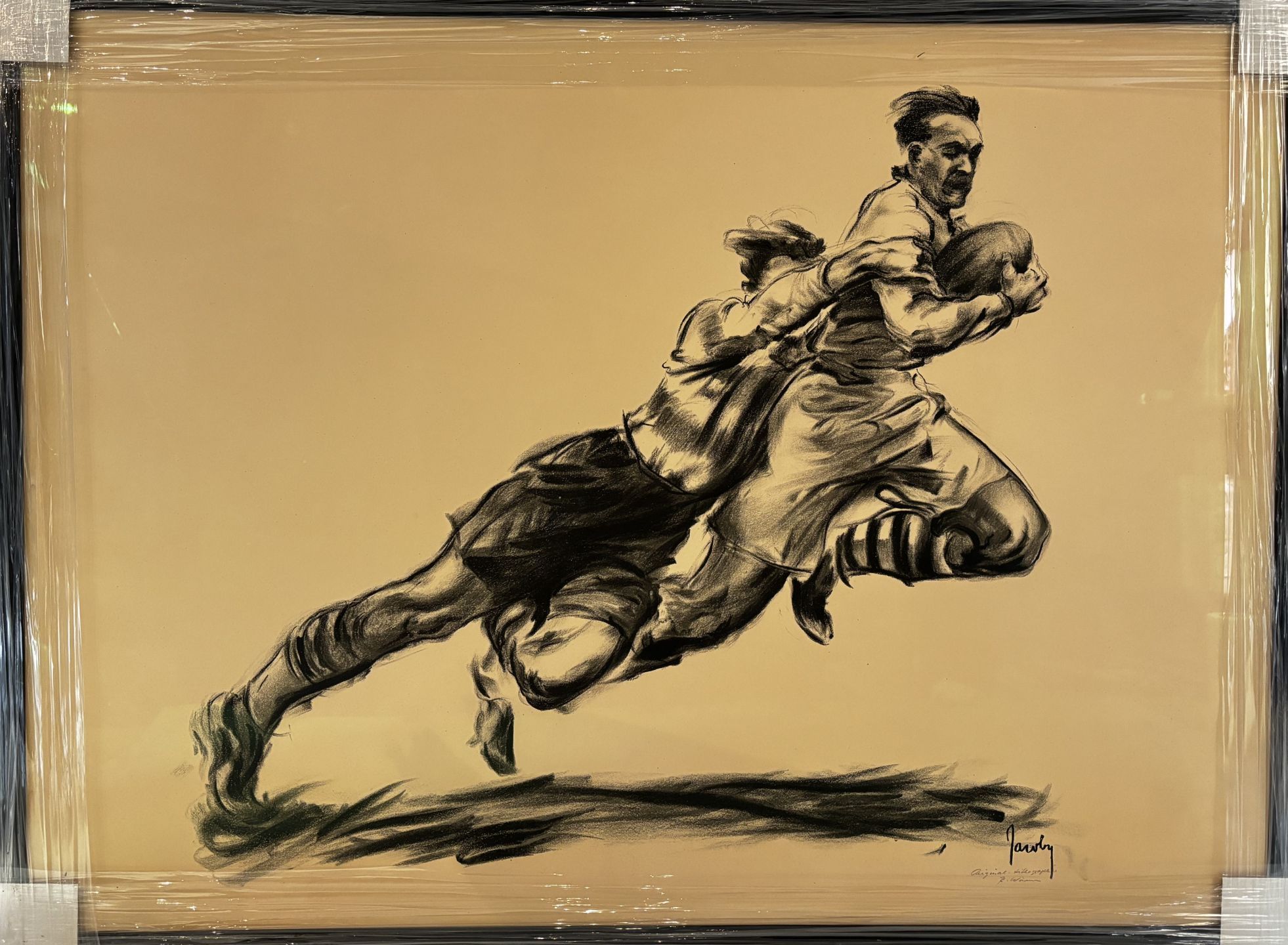 Signed lithograph of Jean Jacoby, rugby player in the 50s