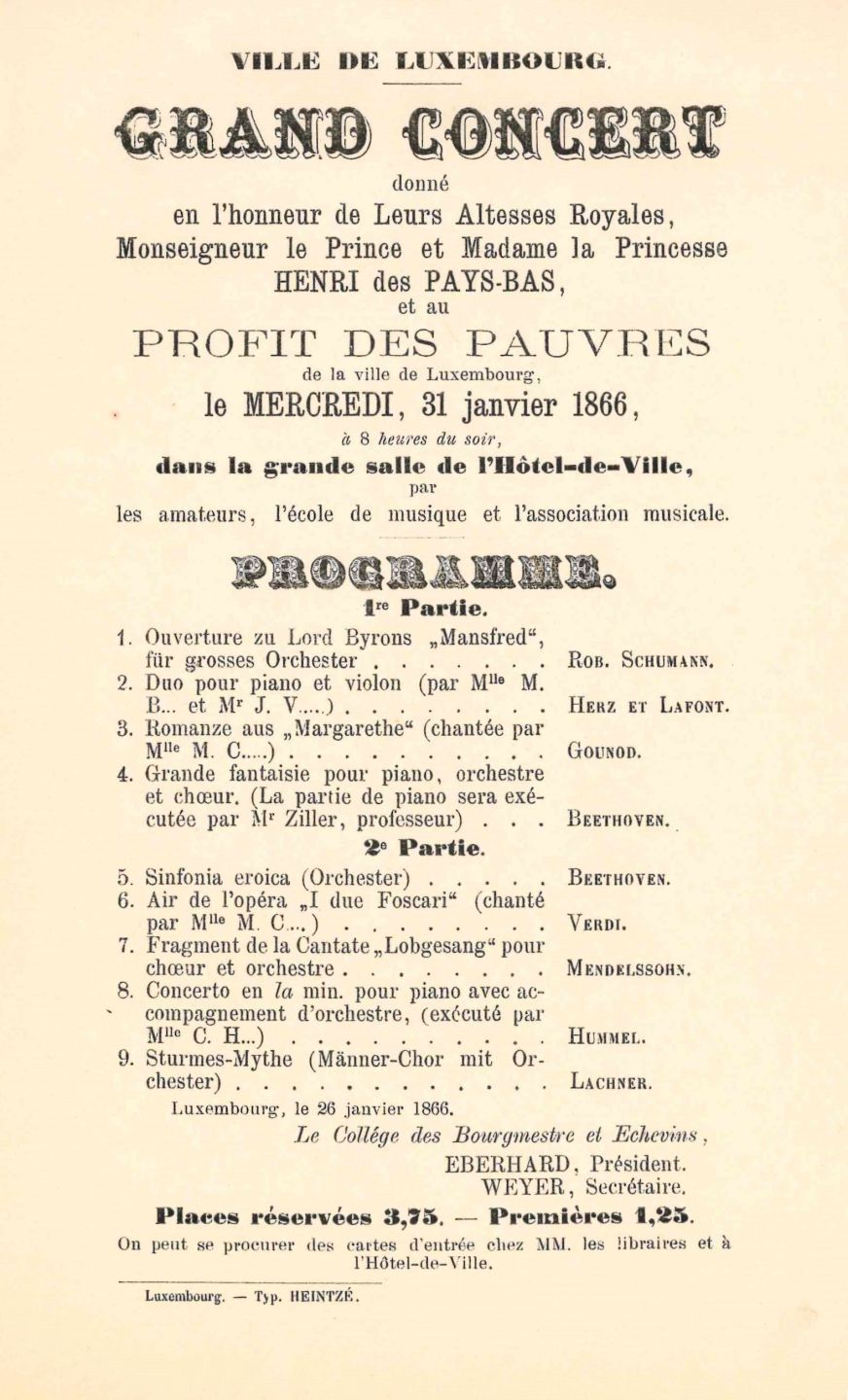 Charity concert program for Their Royal Highnesses, Luxembourg 1866. Outstanding!