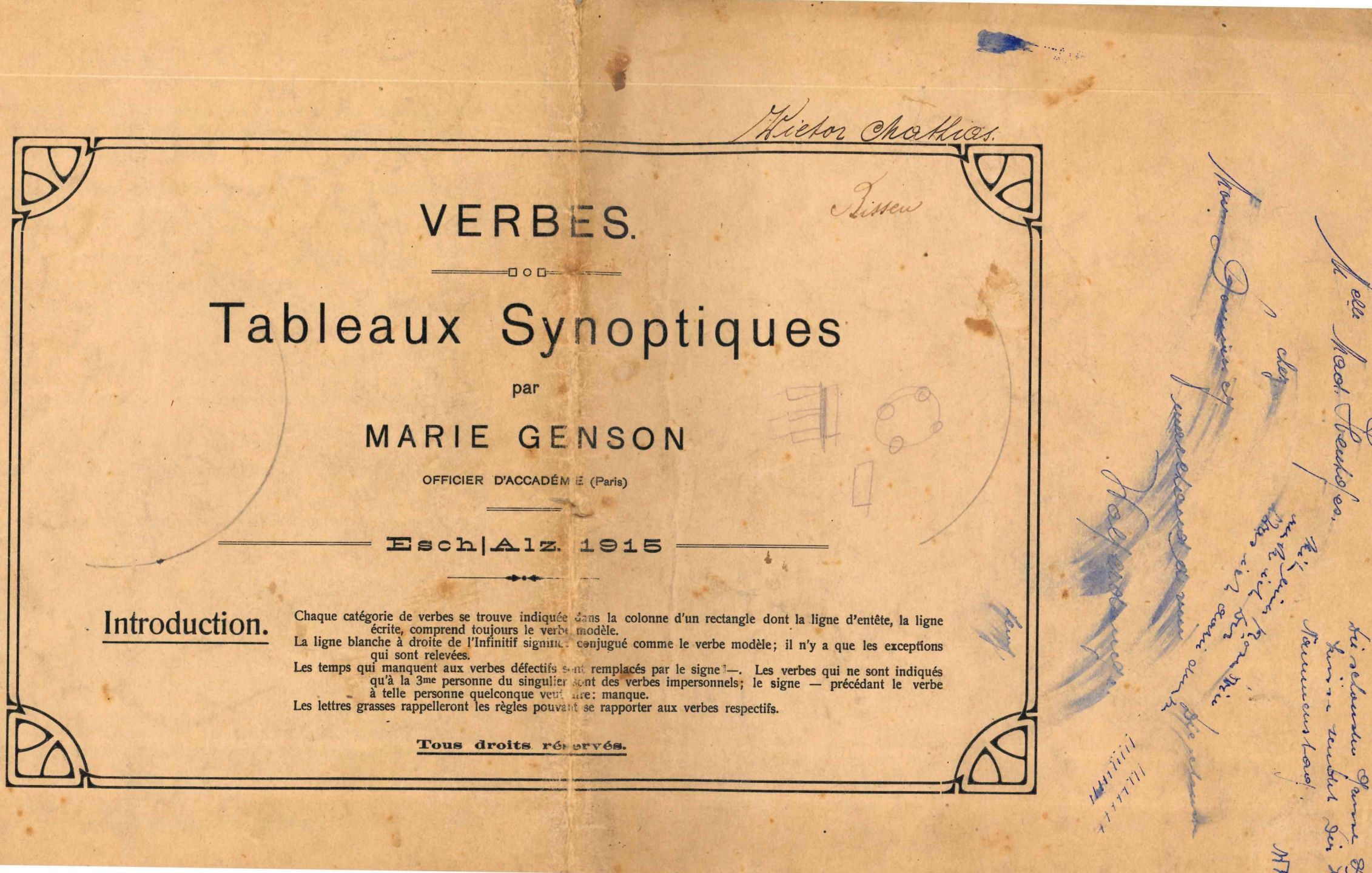 Fascicule oblong des Verbes: tableaux synoptiques by Maris Genson, 1915