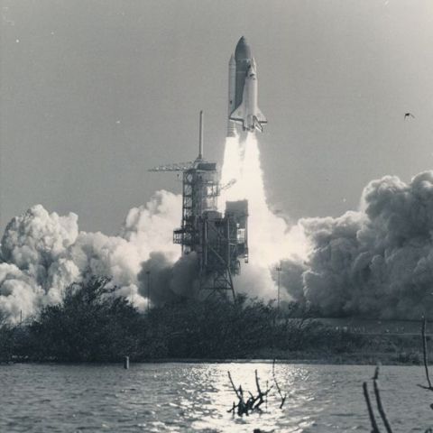 Nasa. Above a pillar of flames, the space shuttle Challenger rises above launch pad 39A in the early hours of April 6, 1984.