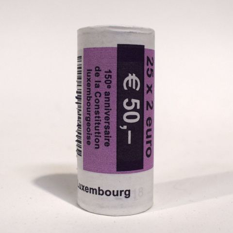 Roll of 25 commemorative 2 euro coins: 150th anniversary of the constitution of Luxembourg, Banque Centrale du Luxembourg edition, 2018