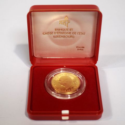 BERG. Commemorative coin in 900 gold: Château de Berg Grande-Duchesse Charlotte de Luxembourg 1896-1985, in Plexiglas and box, 12.89g [Kramer Swiss].