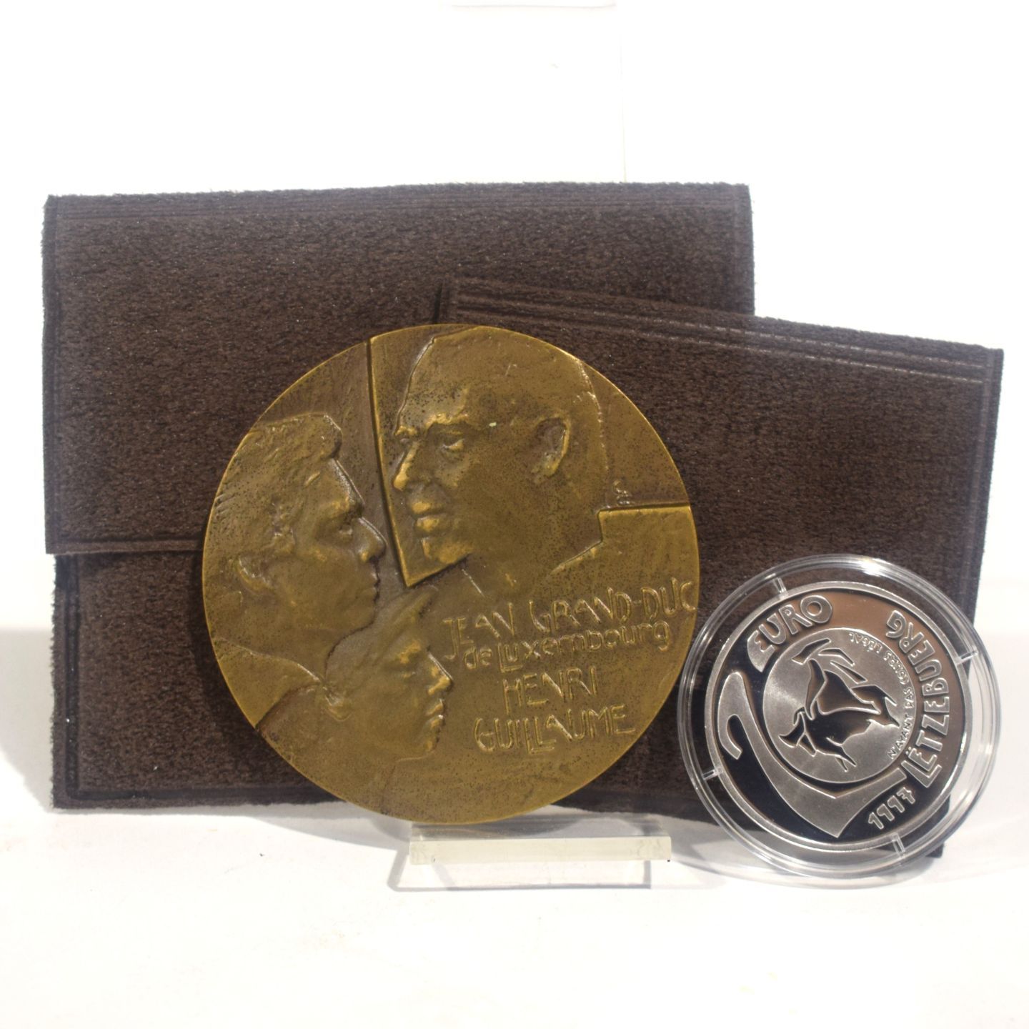 A bronze medal with the same design on the obverse and the words "Luxembourg 1997. Three generations of our dynasty" on the reverse, diameter 69 mm, minted by Fibru Brussels.