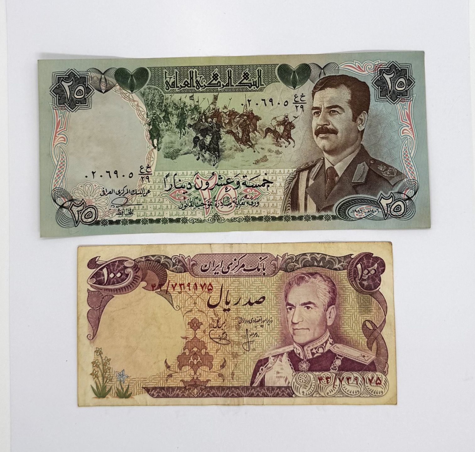 Two banknotes from Central Asia: Iran and Iraq from the 1980s