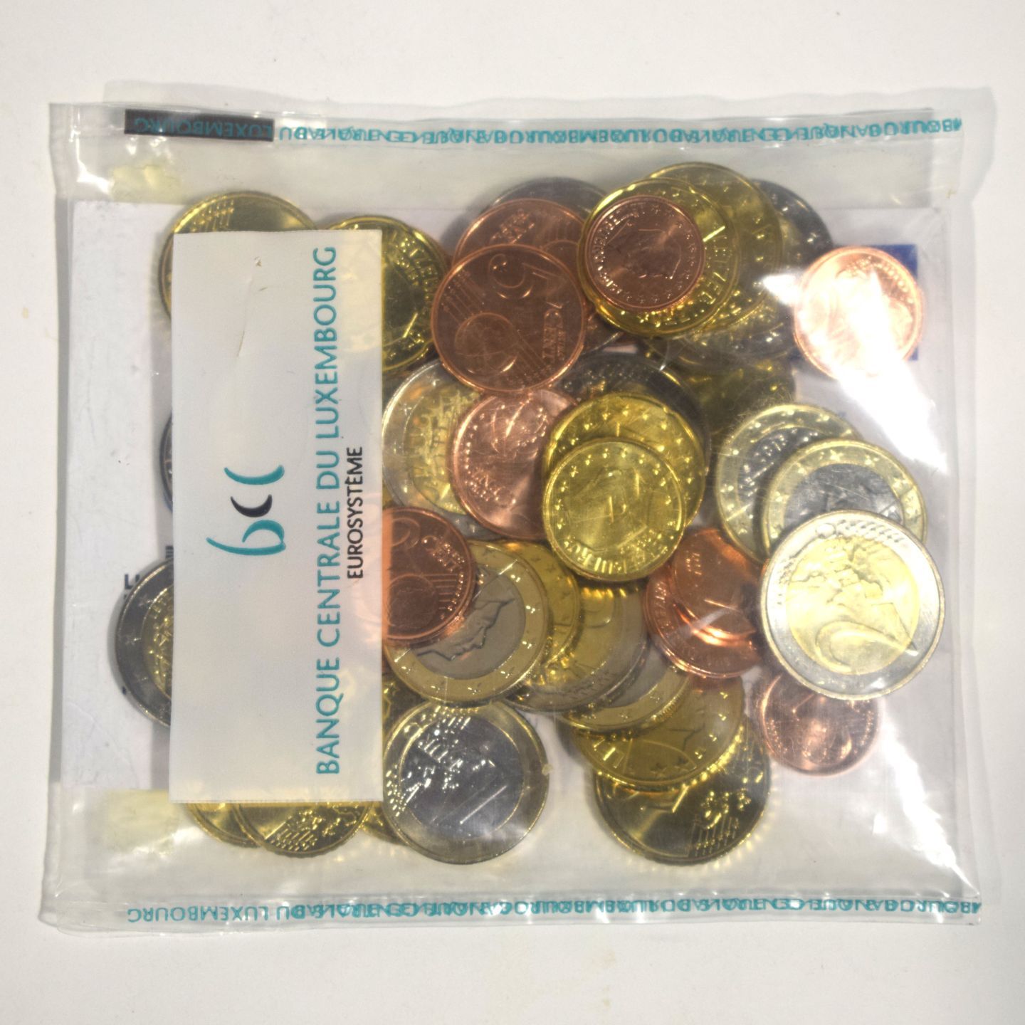 EURO. Reunion of coins in a plastic pouch, Banque Centrale du Luxembourg edition, 2015