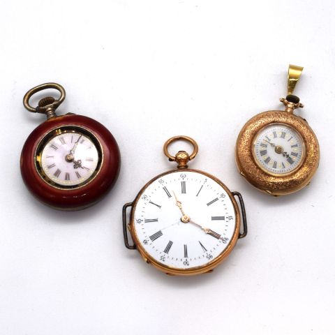 2) Watch in 18ct yellow gold, fully enameled in red (minor flaws), gross weight 23.92g