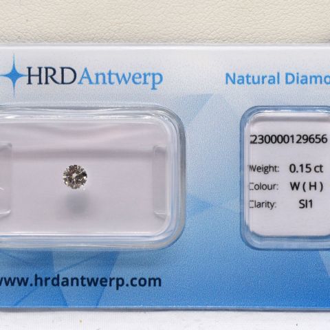0.15 Ct Brilliant cut natural diamond, Clarity SI1, Good cut, H Color, Certificate from 2023 HRD Antwerp.