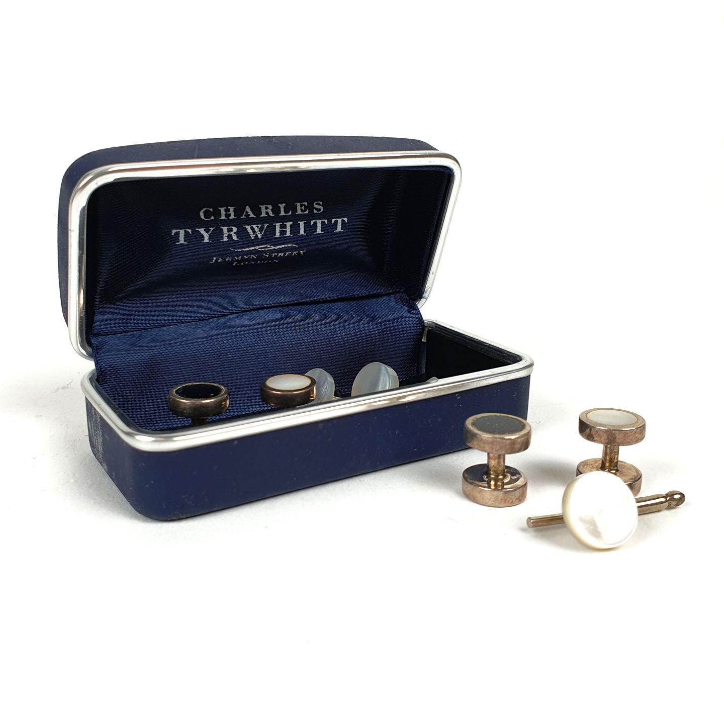 Set of 2 pairs of silver-plated, mother-of-pearl and obsidian cufflinks