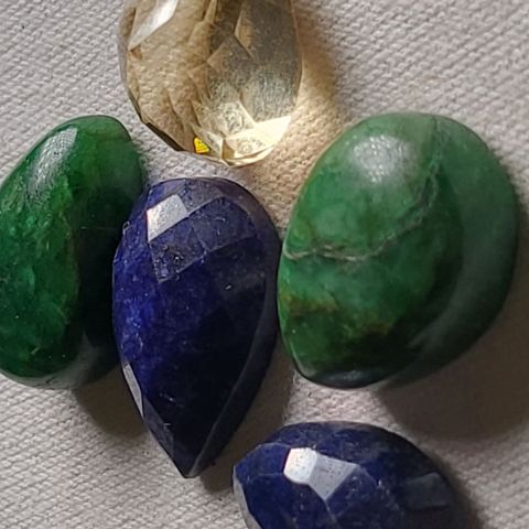Set of 2 Emeralds, 2 Sapphires and a Citrine totaling 73.30 Ct, various sizes and dimensions, GLI (Gemological Laboratory of India) certificate.