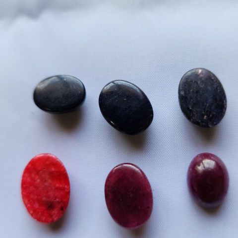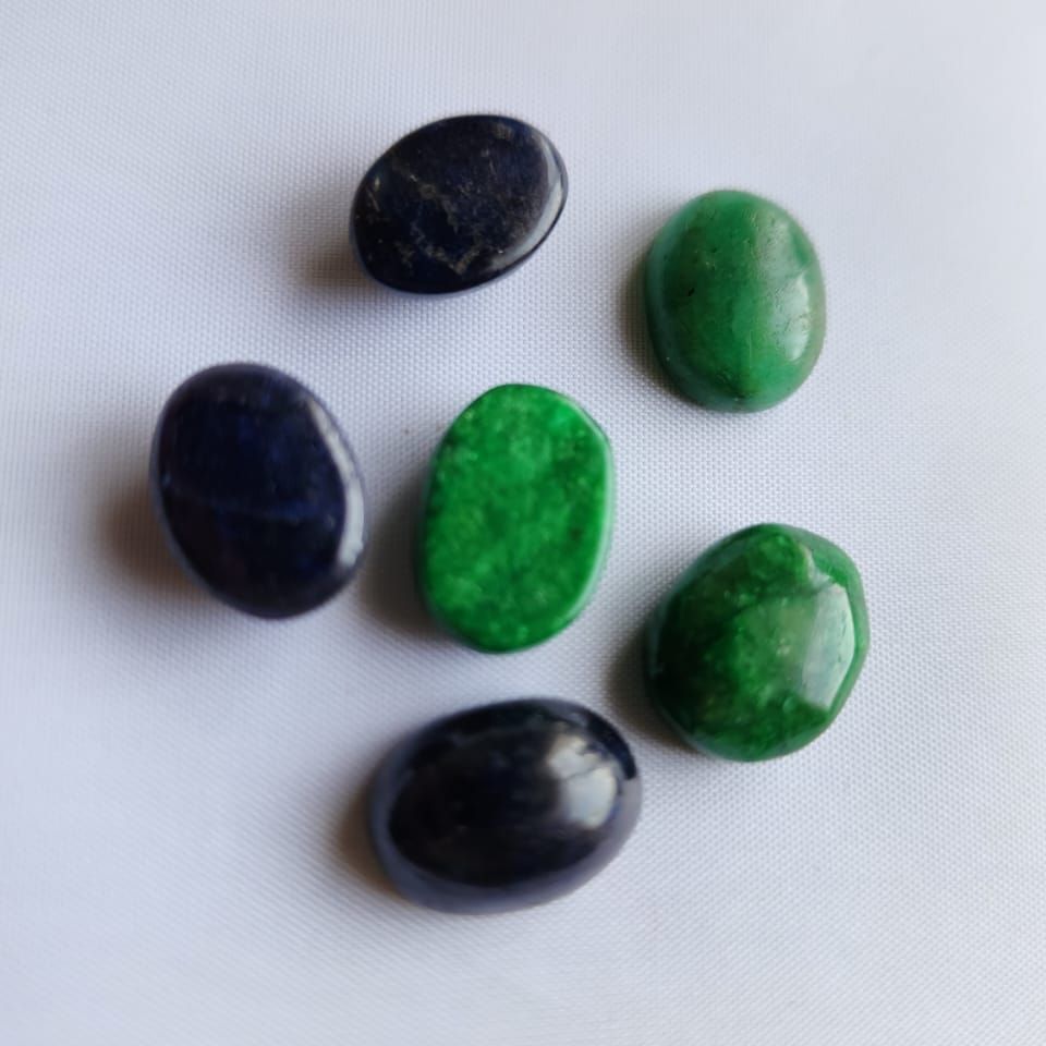 Set of 3 Emeralds and 3 Natural Sapphires totaling 50.00 Ct, oval cabochon size